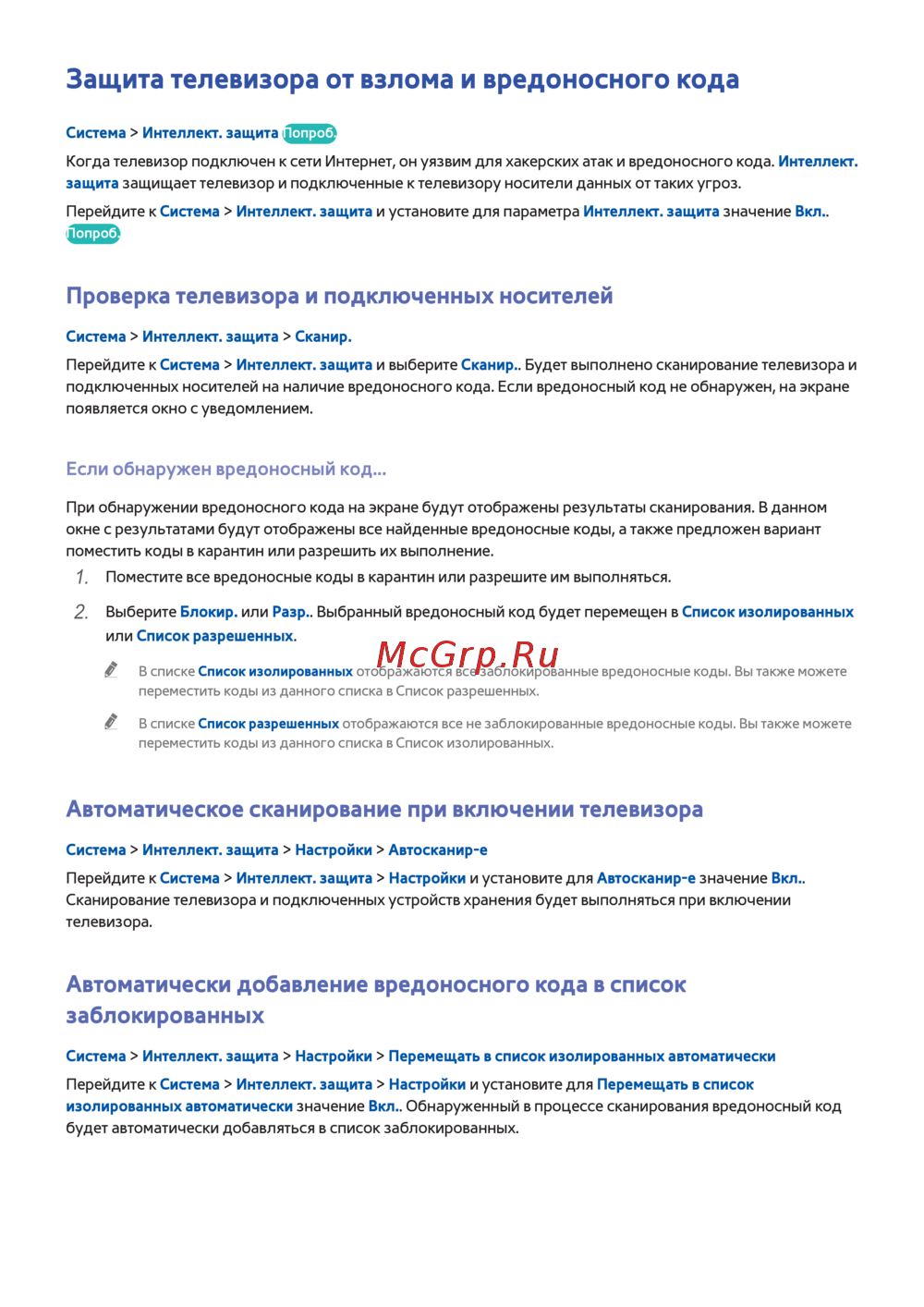 Перейдите к Система > Интеллект. защита и выберите Сканир.. Будет выполнено сканирование телевизора и