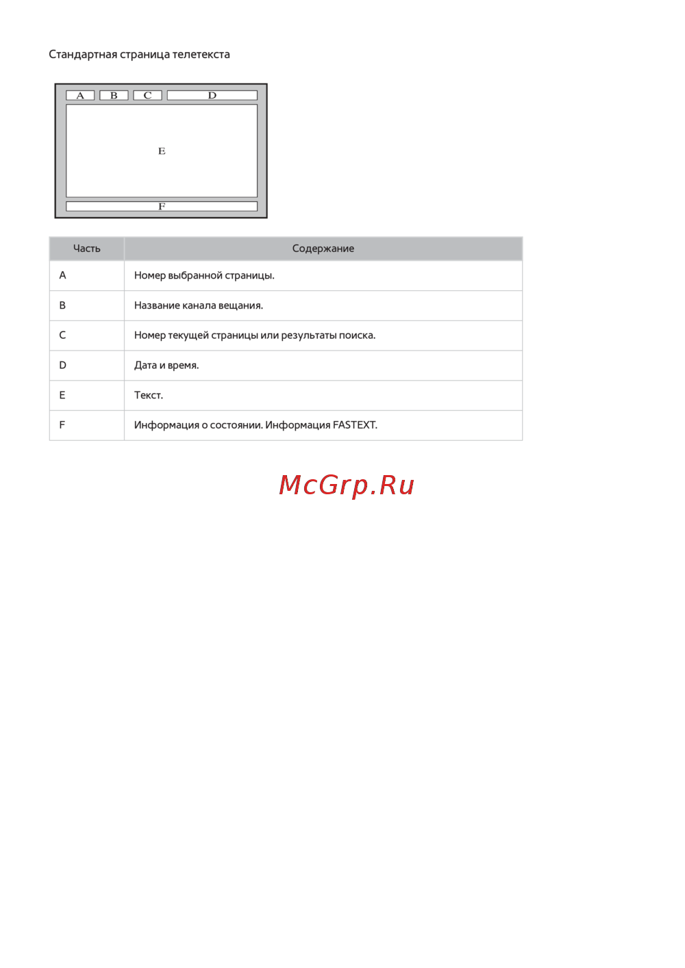 Samsung UE40H6203AK [130/166] Стандартная страница телетекста