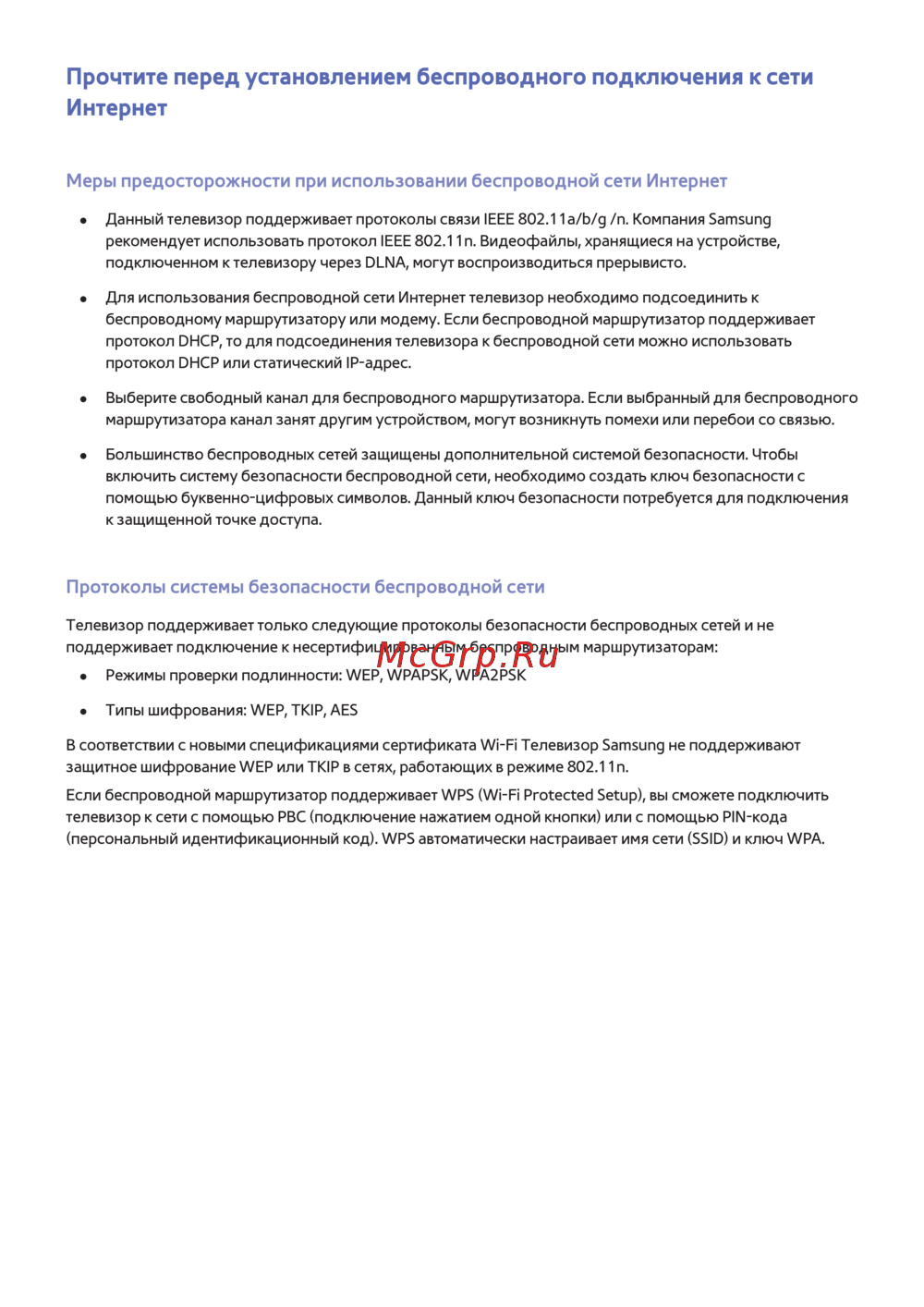 Данный телевизор поддерживает протоколы связи IEEE 802.11a/b/g /n. Компания Samsung