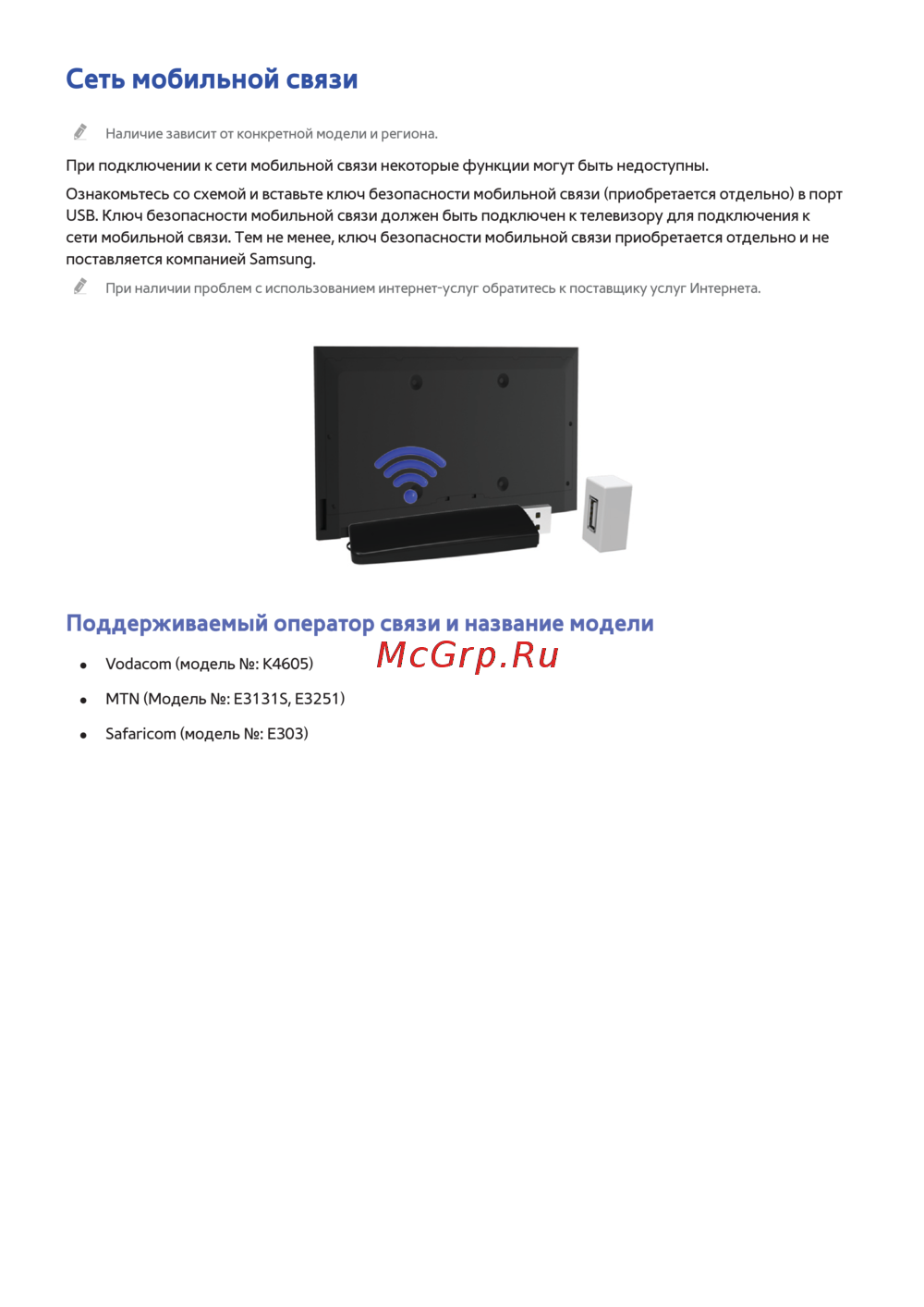 USB. Ключ безопасности мобильной связи должен быть подключен к телевизору для подключения к