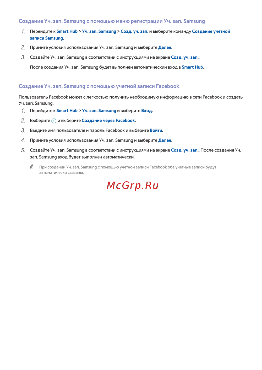Перейдите к Smart Hub > Уч. зап. Samsung > Созд. уч. зап. и выберите команду Создание учетной