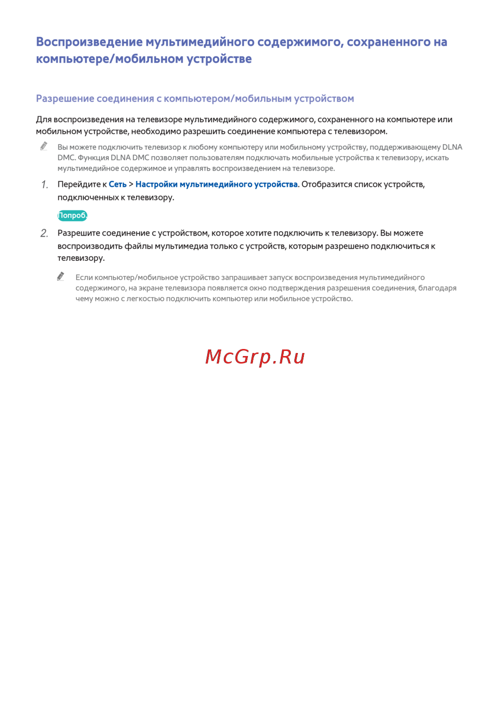 мультимедийное содержимое и управлять воспроизведением на телевизоре.