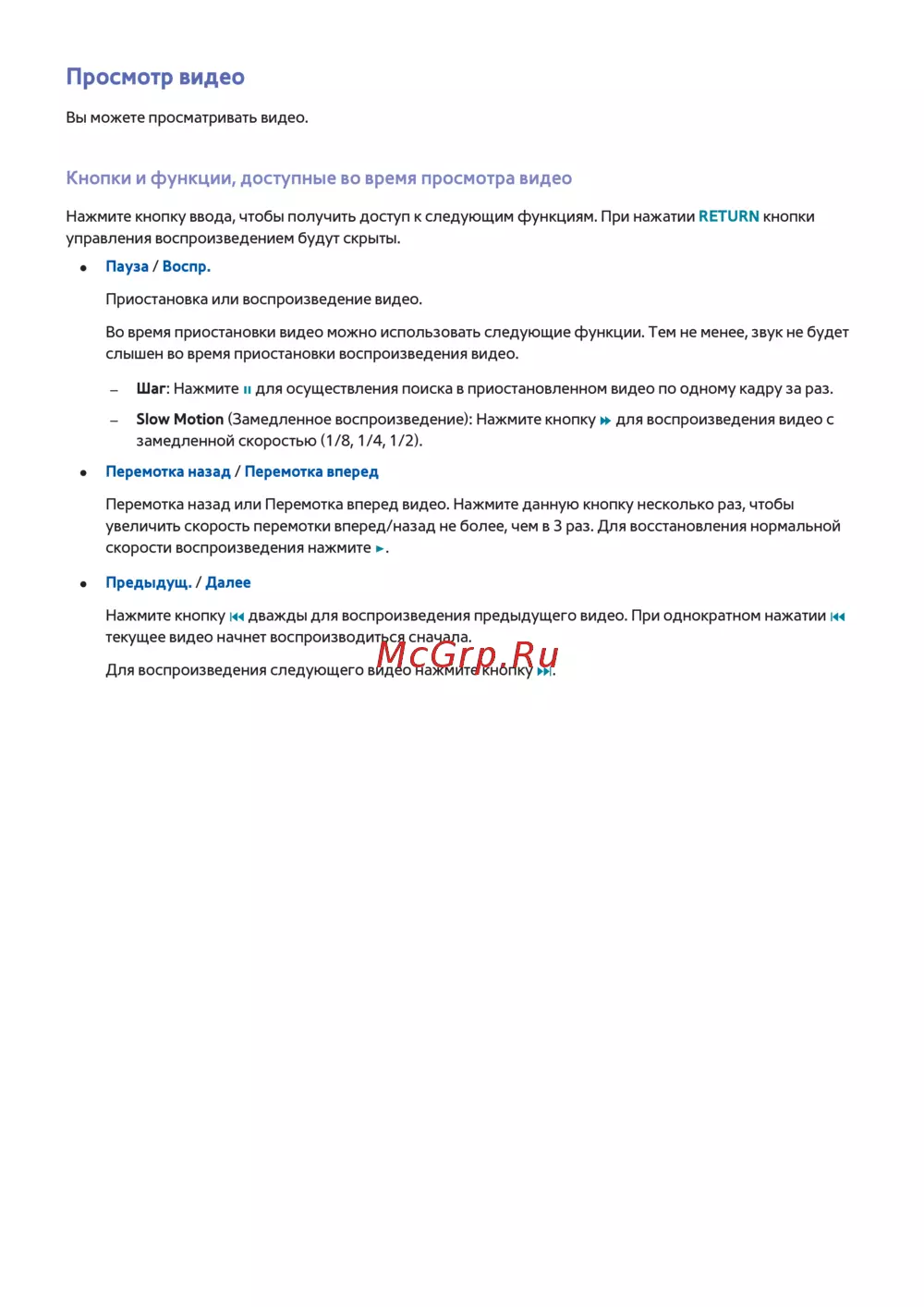 Samsung UE40H6203AK — функции просмотра видео: управление воспроизведением и навигация [69/166]