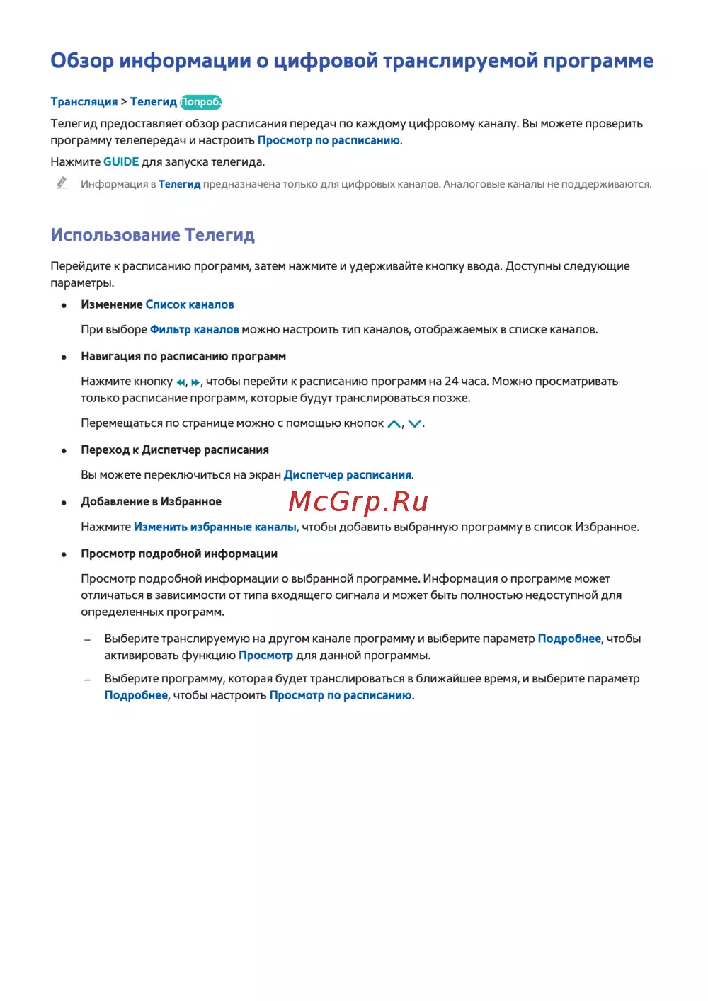 Информация в Телегид предназначена только для цифровых каналов. Аналоговые каналы не поддерживаются.