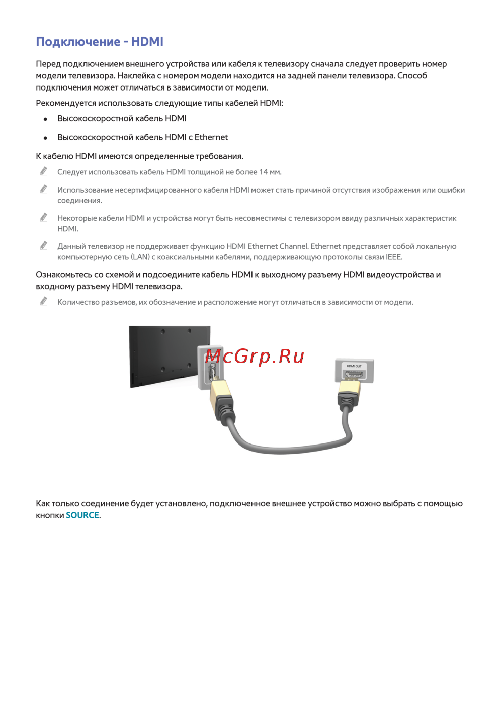 Некоторые кабели HDMI и устройства могут быть несовместимы с телевизором ввиду различных характеристик