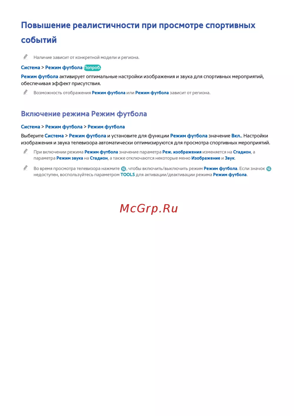 Возможность отображения Режим футбола или Режим футбола зависит от региона.