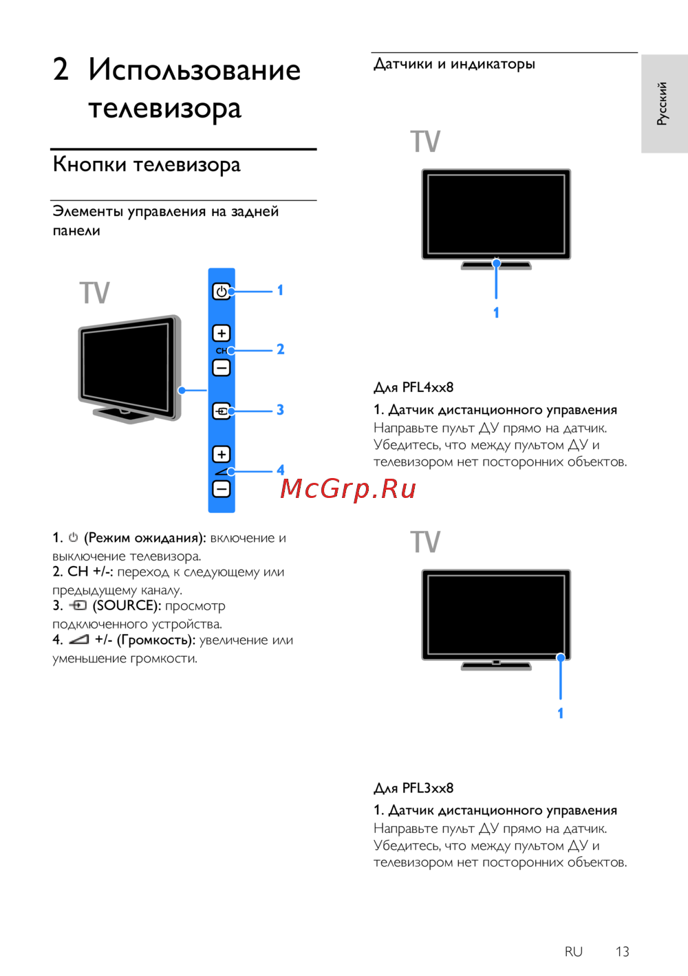 ![Philips 40PFL4358H [13/77] Элементы управления на задней панели](/views2/1124846/page13/bgd.png)
