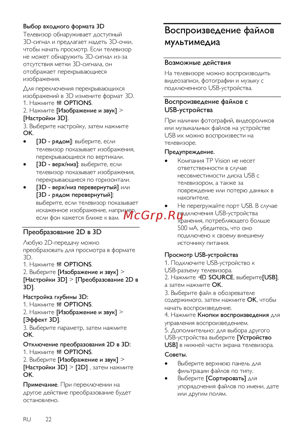 ![Philips 40PFL4358H [22/77] Преобразование 2d в 3d](/views2/1124846/page22/bg16.png)