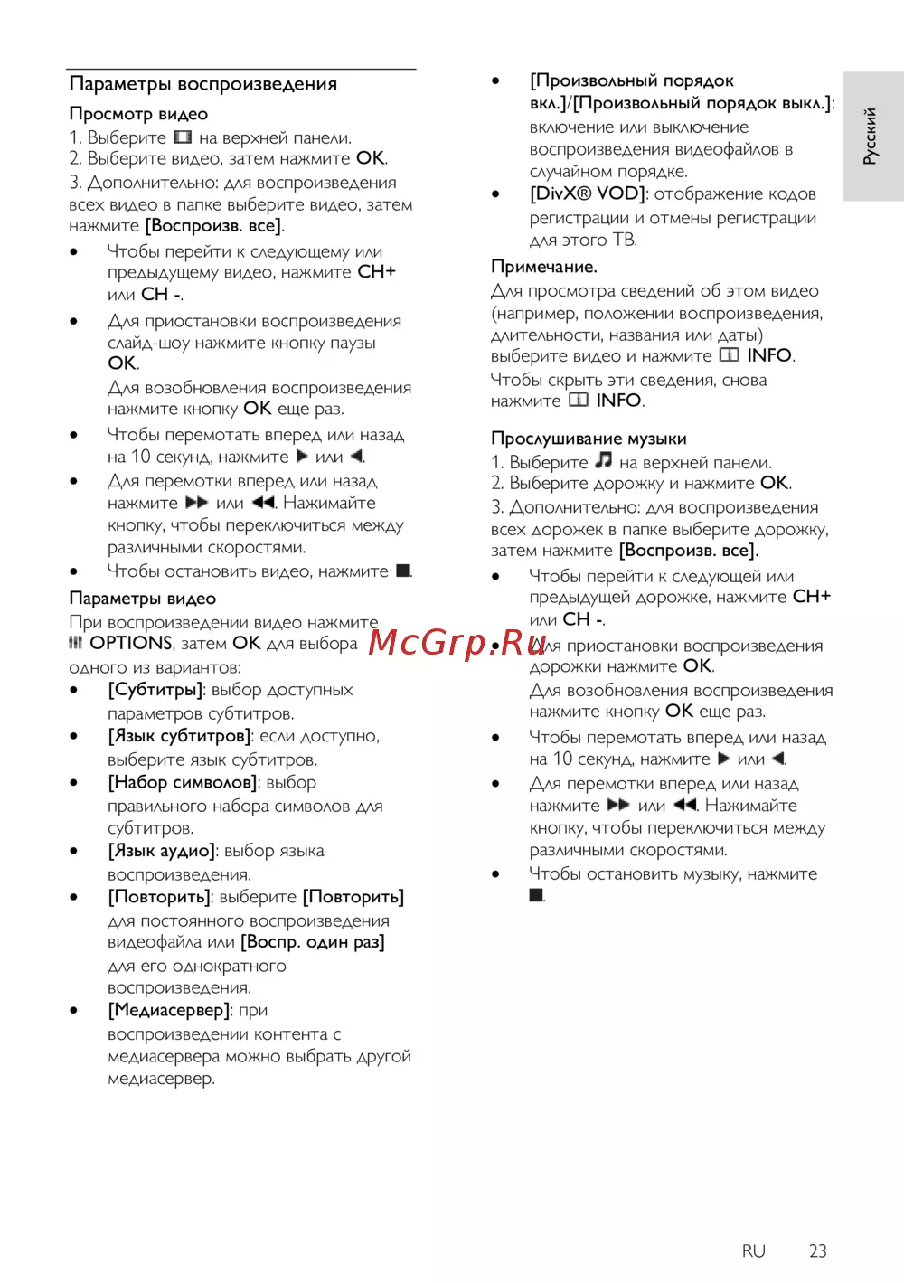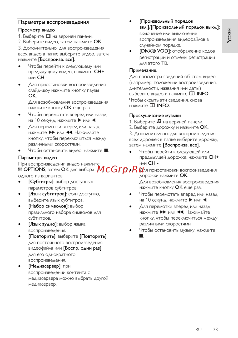 Philips 40PFL4358H [23/77] Параметры воспроизведения