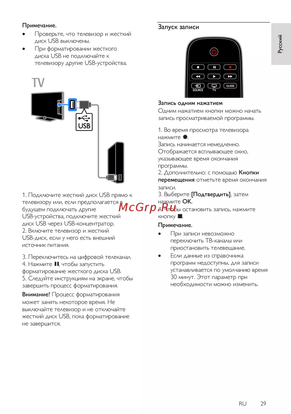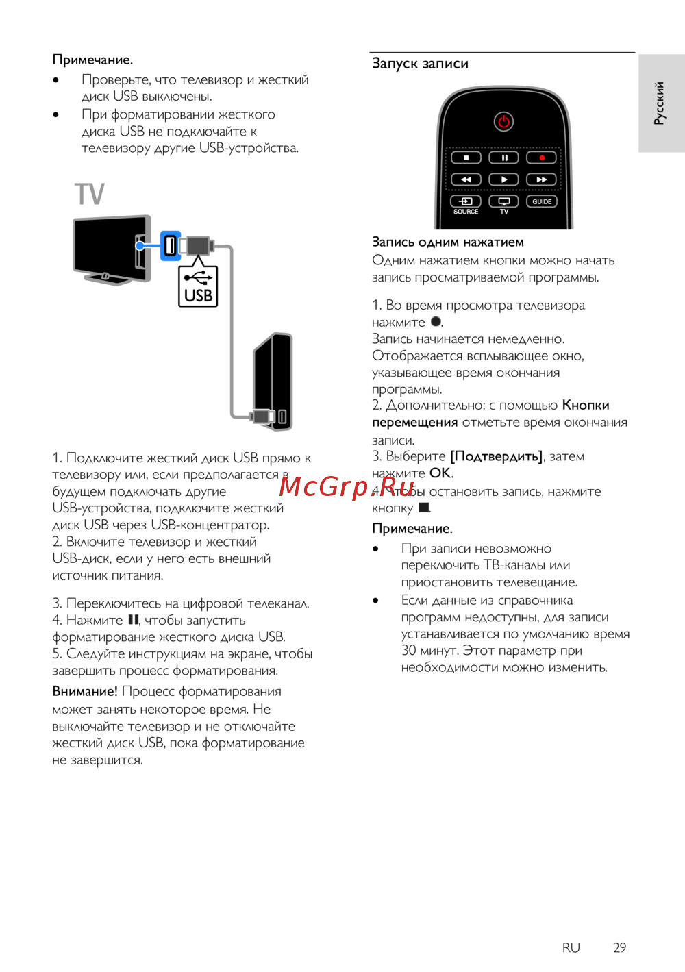 Philips 40PFL4358H — как форматировать USB-диск и записывать программы на телевизоре [29/77]