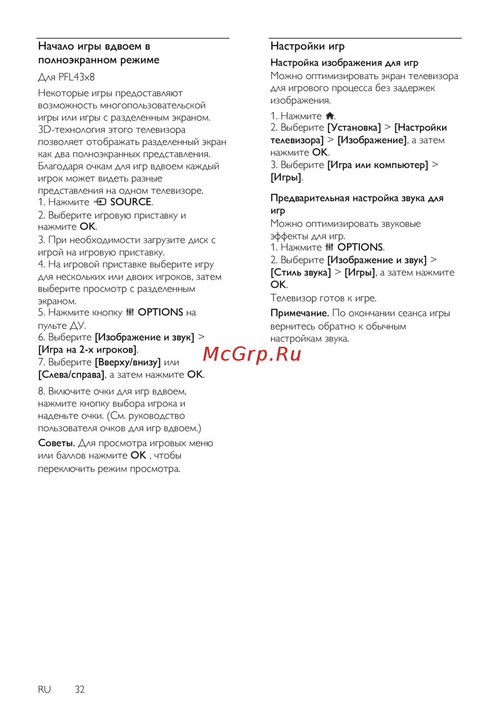 ![Philips 40PFL4358H [32/77] Начало игры вдвоем в полноэкранном режиме](/views2/1124846/page32/bg20.png)