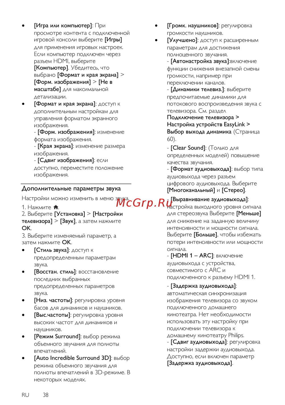 ![Philips 40PFL4358H [38/77] Дополнительные параметры звука](/views2/1124846/page38/bg26.png)