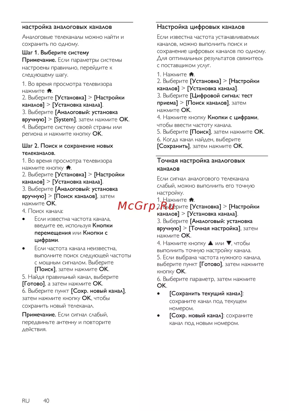 Philips 40PFL4358H [40/77] Настройка аналоговых каналов
