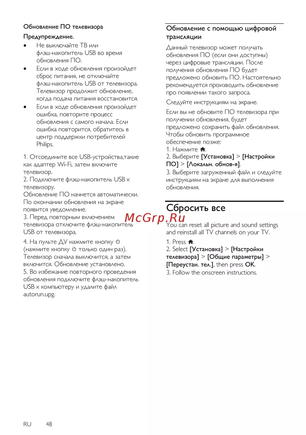 - Обновление с помощью цифровой трансляции p.48