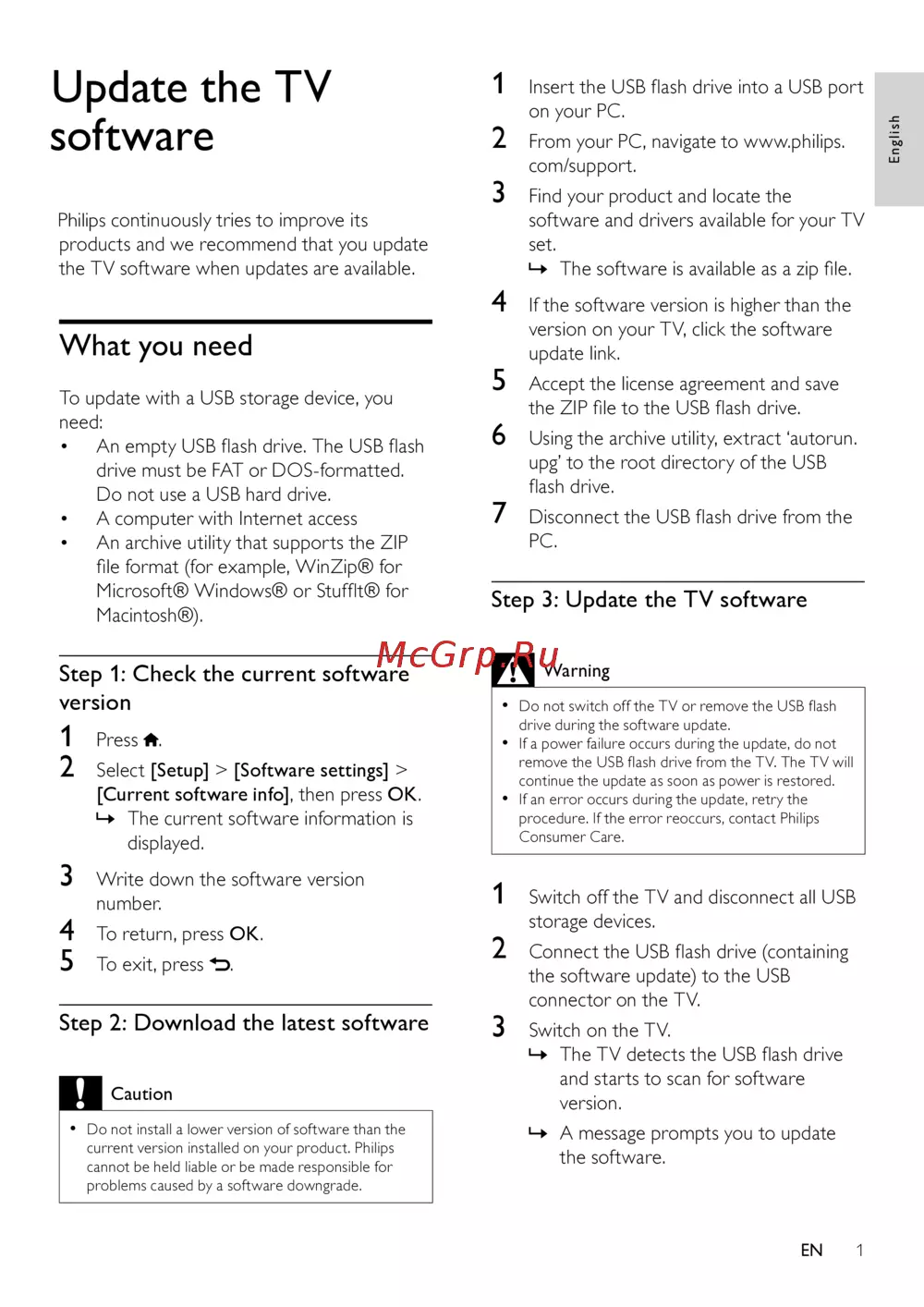 Philips 40PFL3008HИнструкция по обновлению -