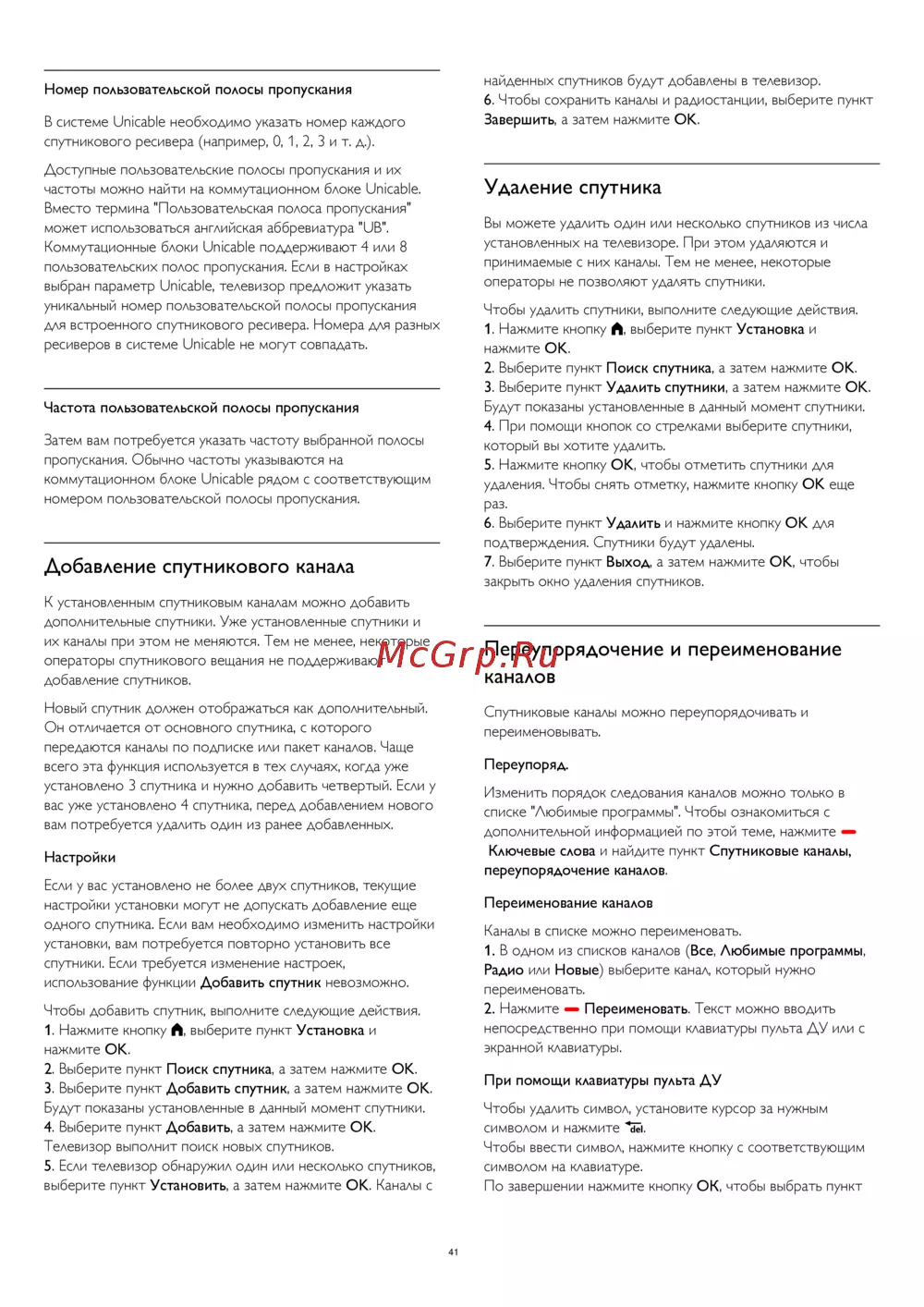 Philips 40PFS6719 — настройка пользовательских полос пропускания для спутниковых ресиверов [41/108]
