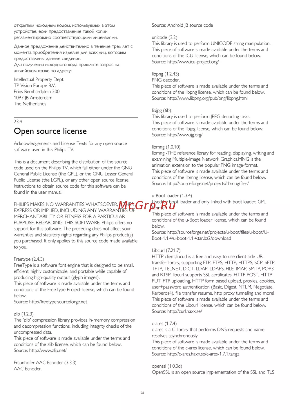 code used on the Philips TV, which fall either under the GNU