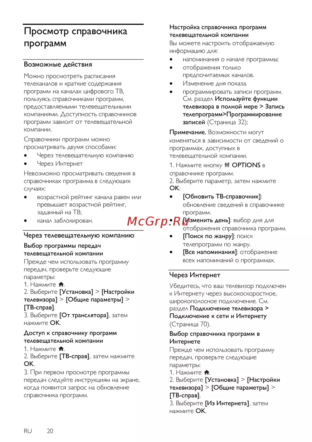 Philips 40PFL3208H — как просмотреть расписания телеканалов и программы передач [20/91]