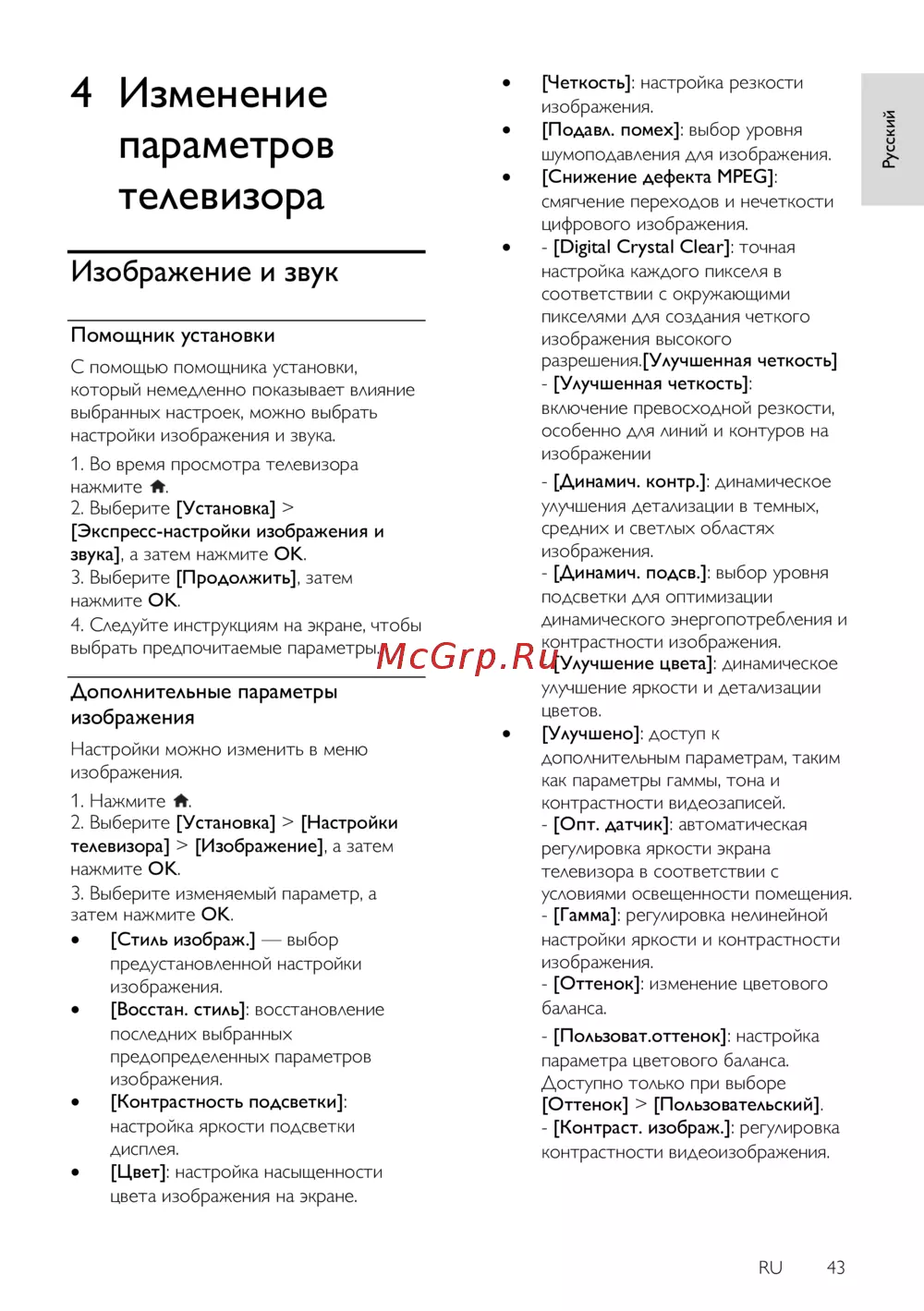 - Изменение параметров телевизора 43 p.2