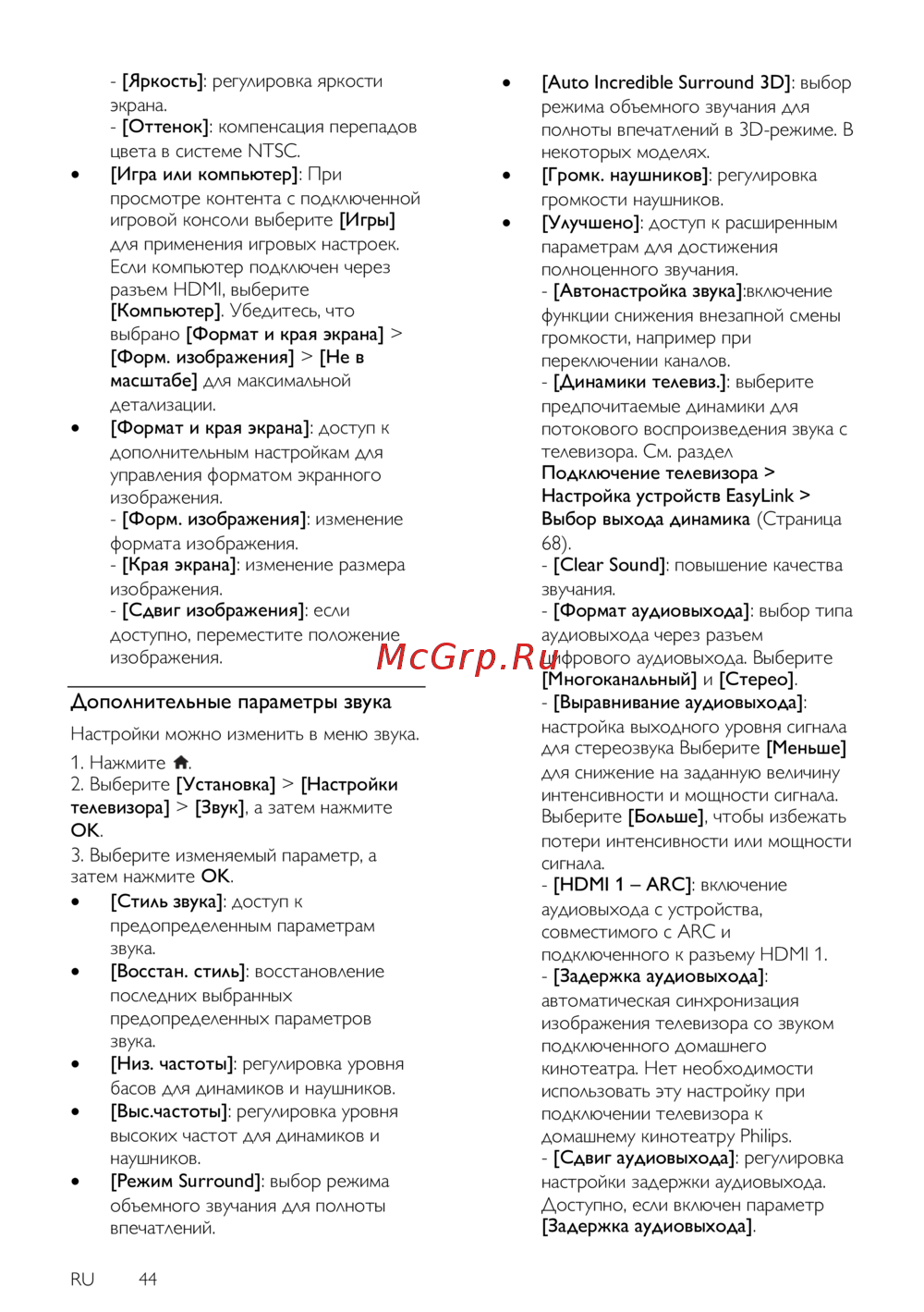 Philips 40PFL3208H — настройки экрана и звука: оптимизация изображения и аудио [44/91]