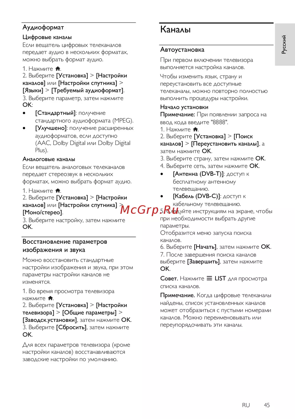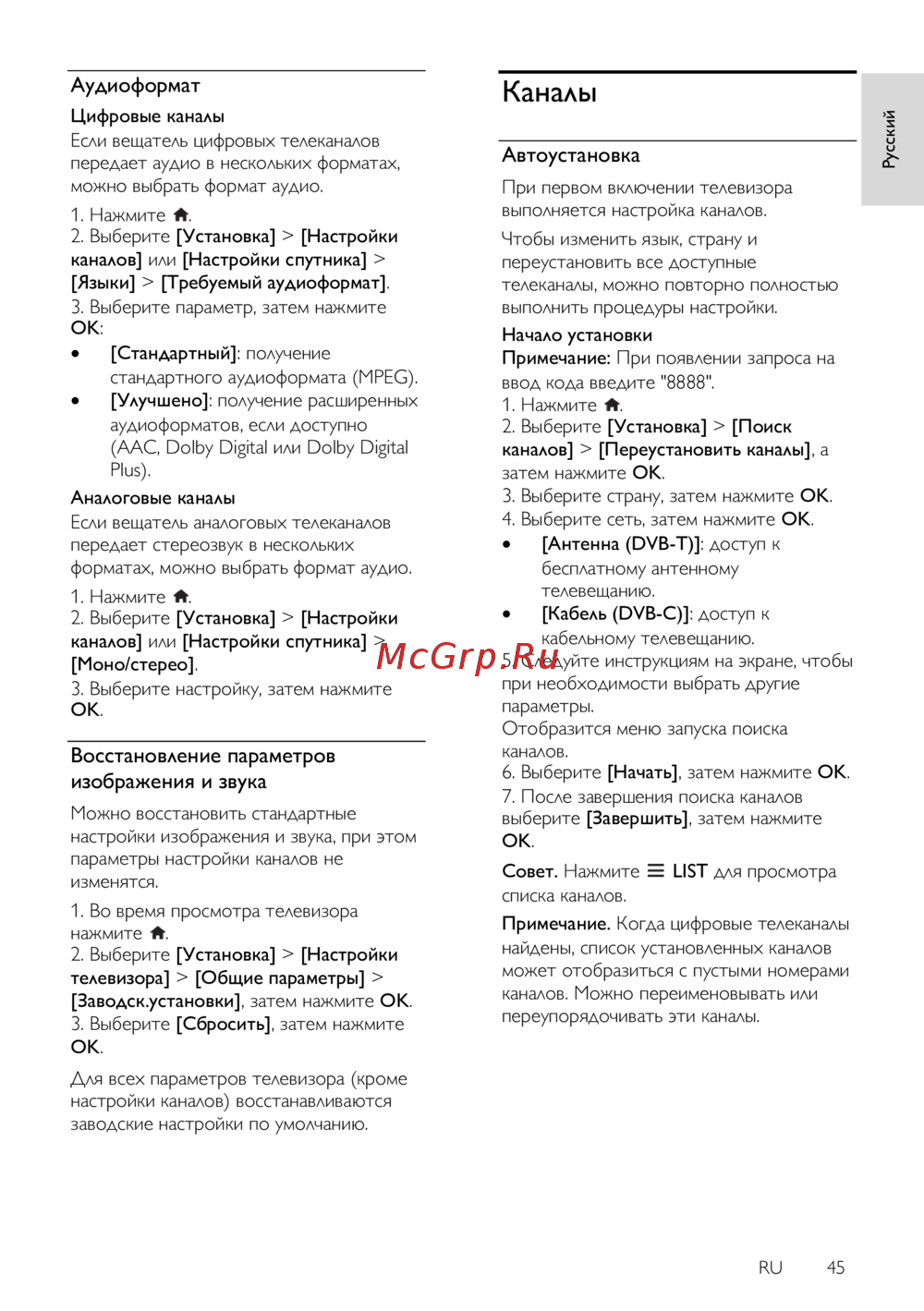 Philips 40PFL3208H — настройка аудио и каналов на цифровом телевизоре [45/91]
