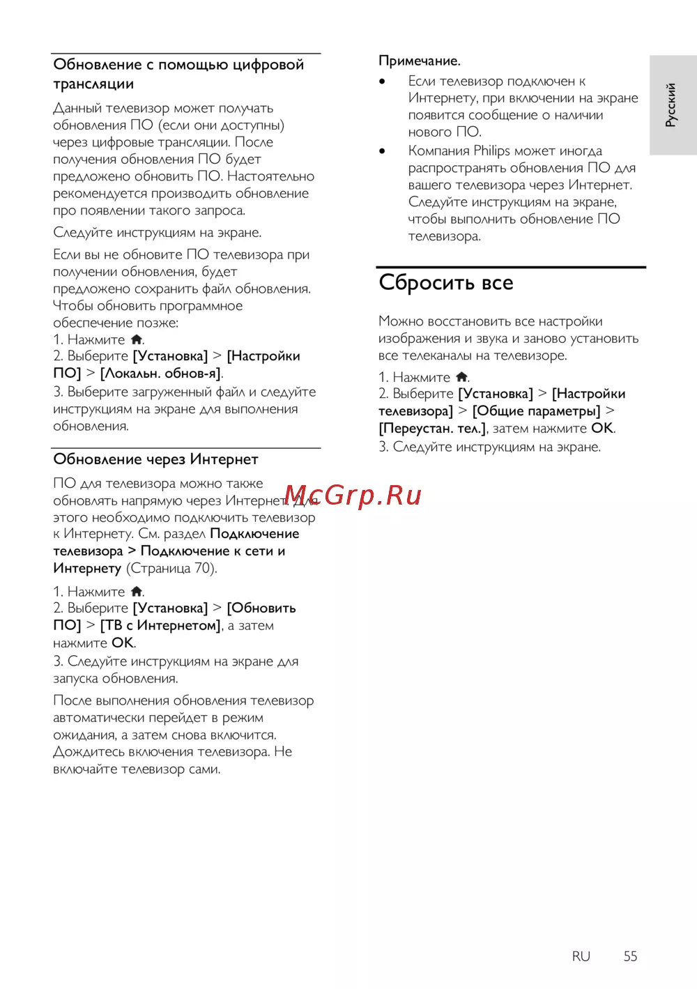 Philips 40PFL3208H — как обновить программное обеспечение телевизора через интернет и трансляцию [55/91]