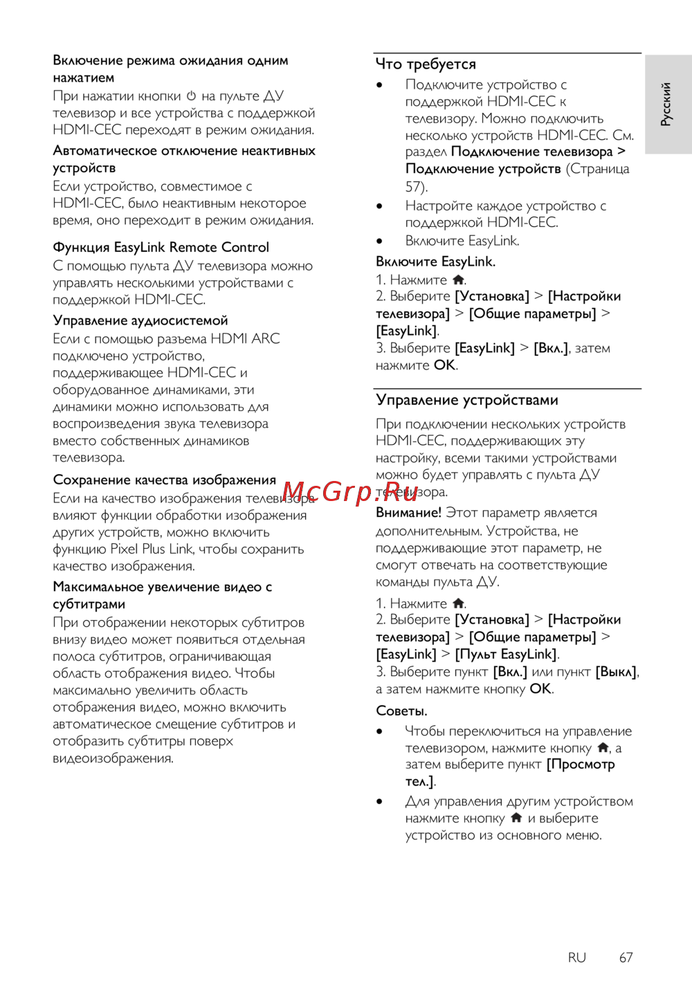 Philips 40PFL3208H — управление устройствами с поддержкой HDMI-CEC и EasyLink [67/91]