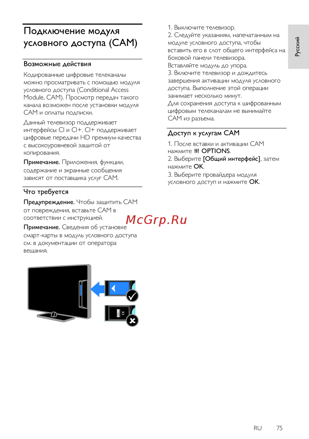 Philips 40PFL3208H — подключение модуля условного доступа для цифровых телеканалов [75/91]