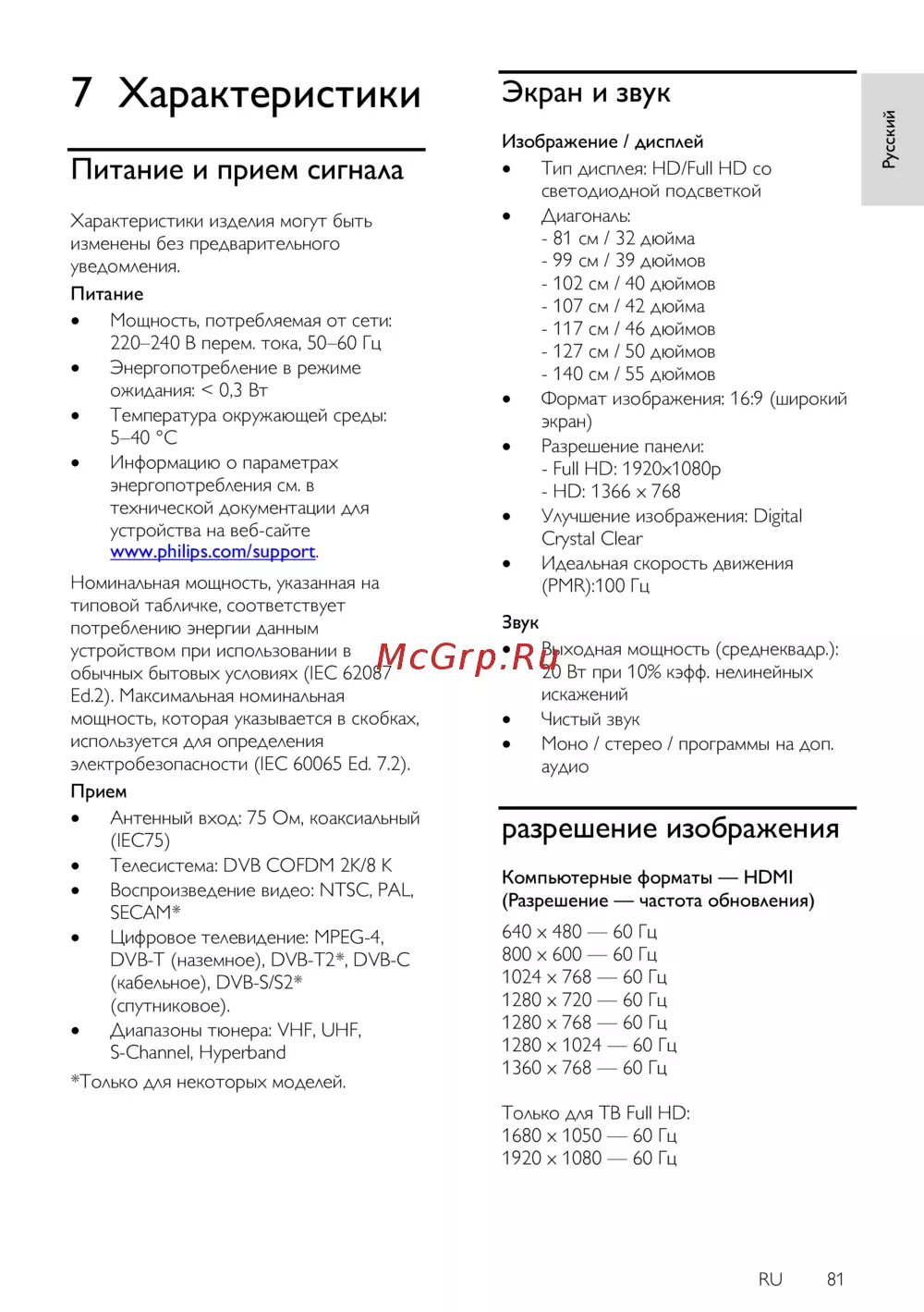 ![Philips 40PFL3208H [81/91] Характеристики](/views2/1023923/page81/bg51.png)