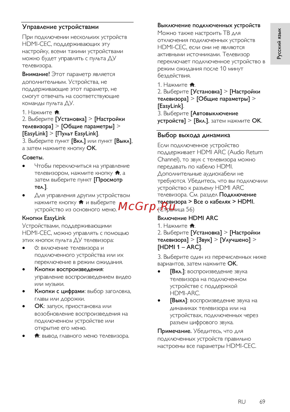 Philips 46PFL4508H — управление устройствами через HDMI-CEC: Полное руководство [69/90]