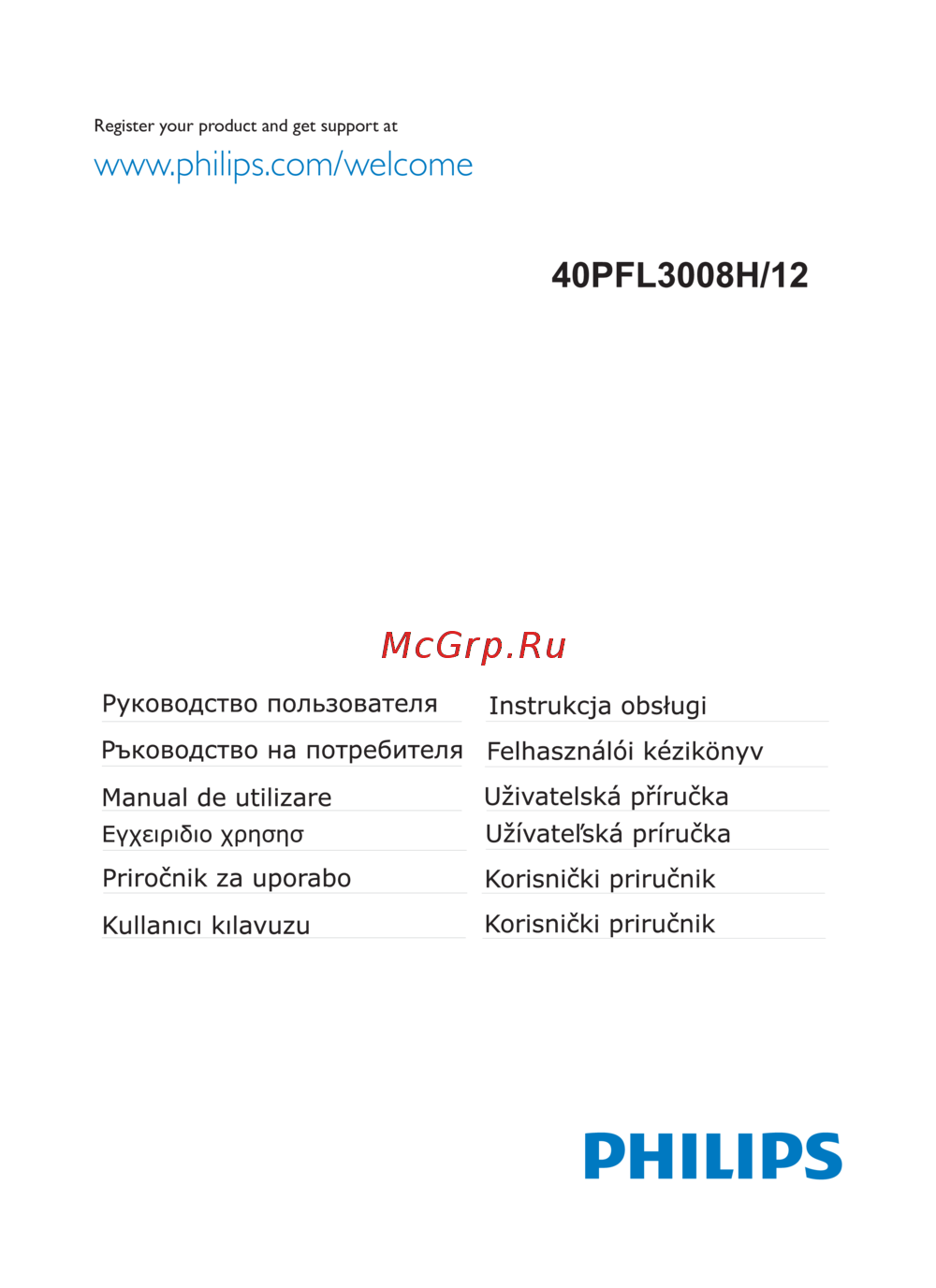 Philips 42PFH6309Инструкция по быстрому запуску -