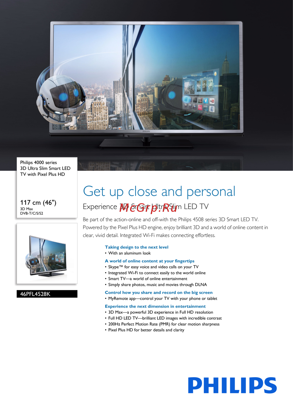 Be part of the action-online and off-with the Philips 4508 series 3D Smart LED TV.