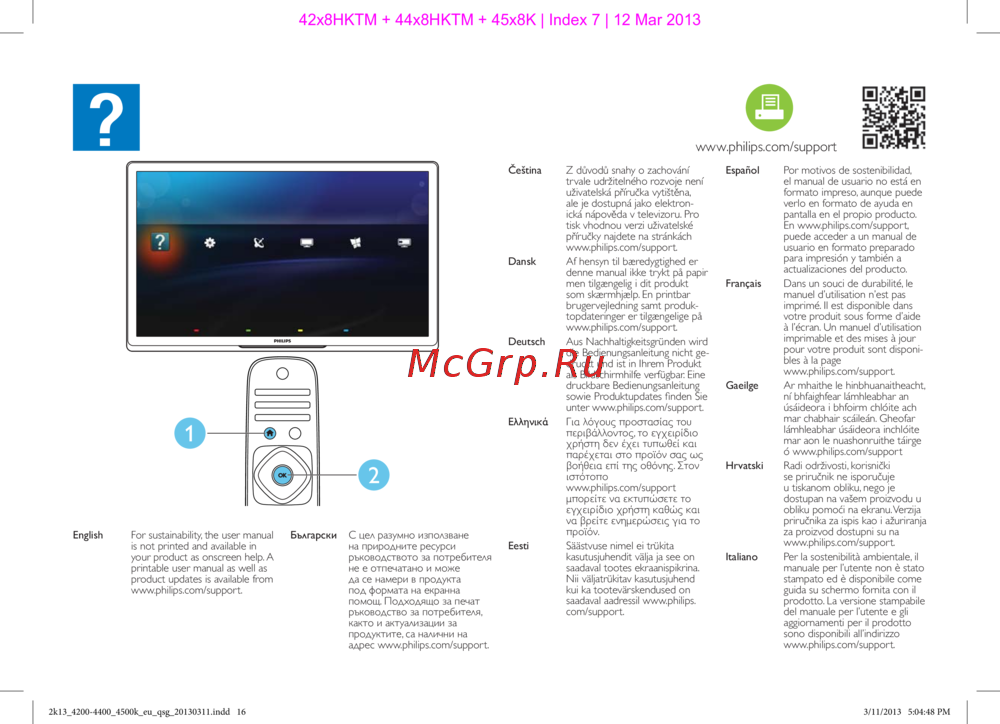 Philips 46PFL4508KИнструкция по быстрому запуску -