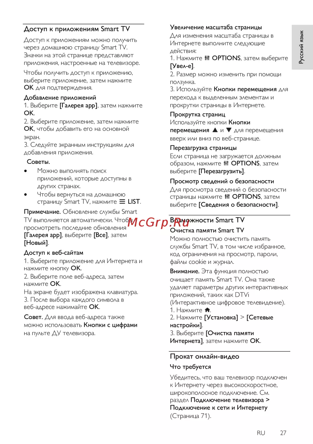 Philips 46PFL4528K — как получить доступ к приложениям на Smart TV и использовать интернет [27/90]