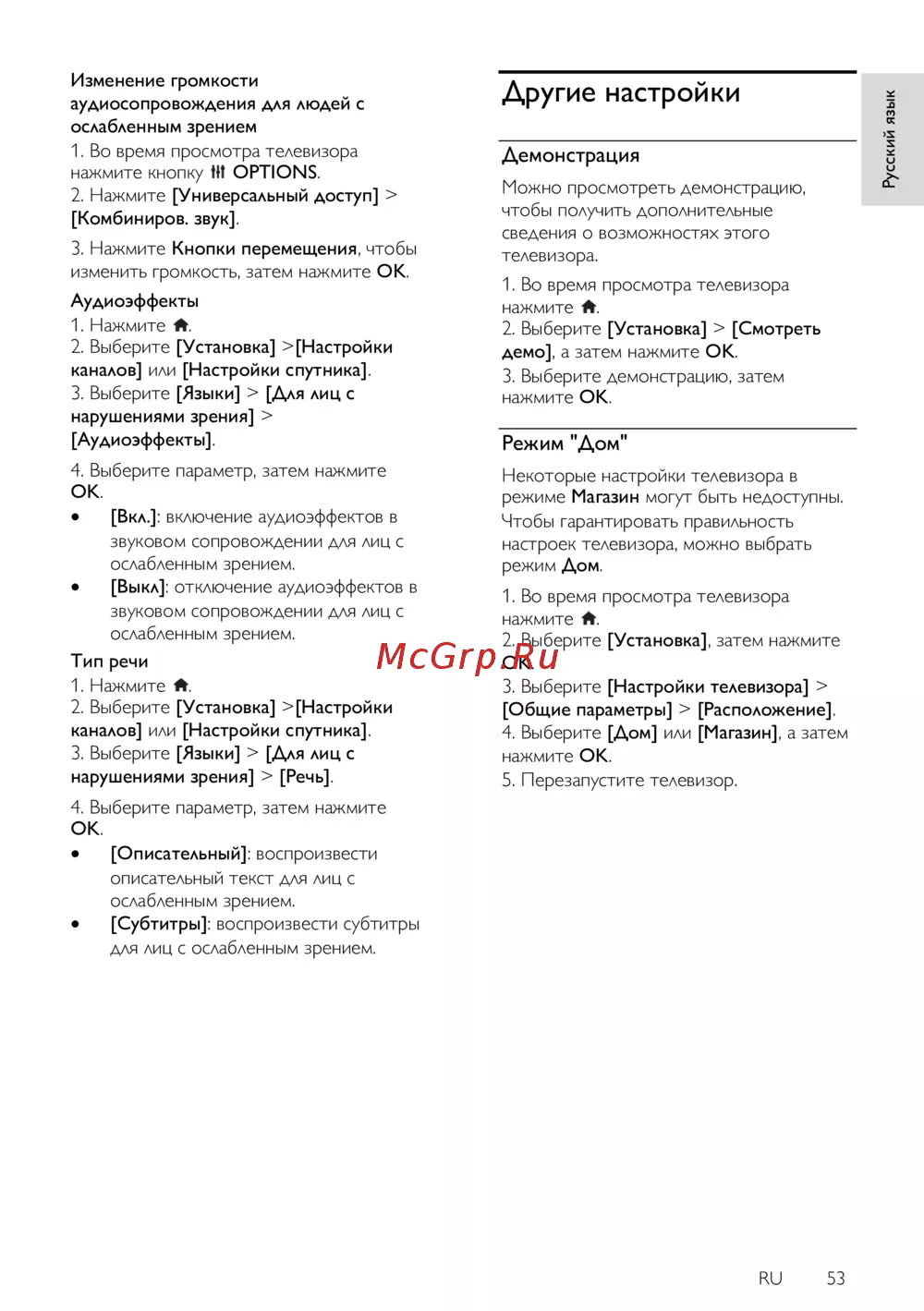 Philips 46PFL4528K — настройки аудиосопровождения для людей с ослабленным зрением [53/90]