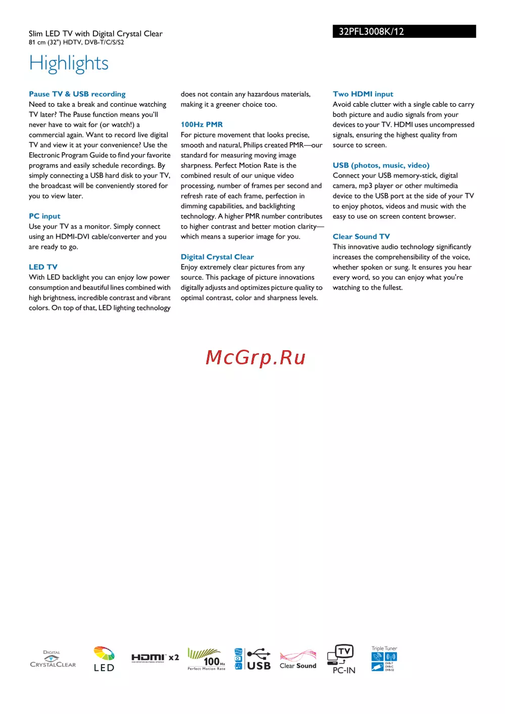 Philips 32PFL3008HБрошюра