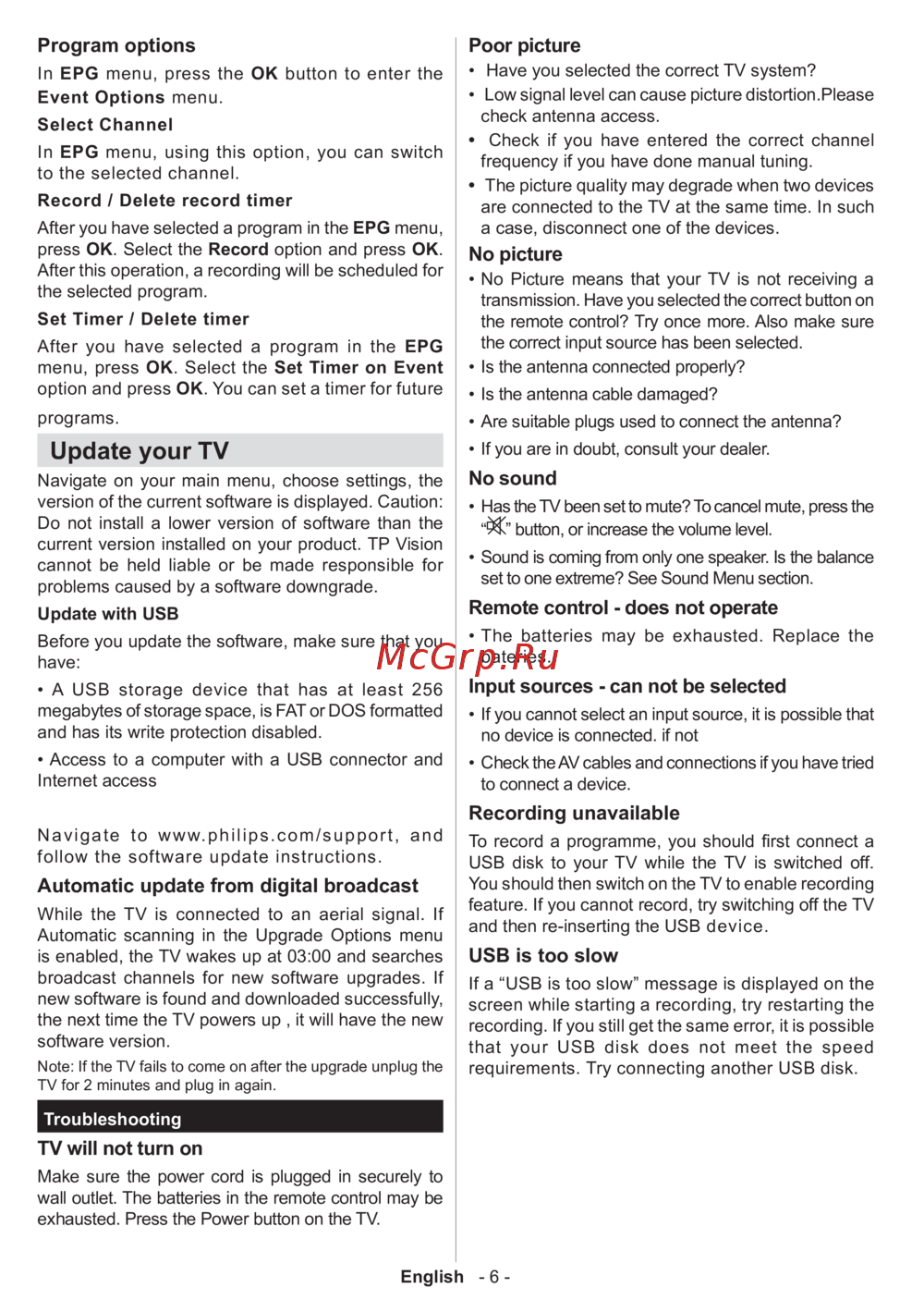 Philips 32 PFL6606H/60Инструкция по обновлению -