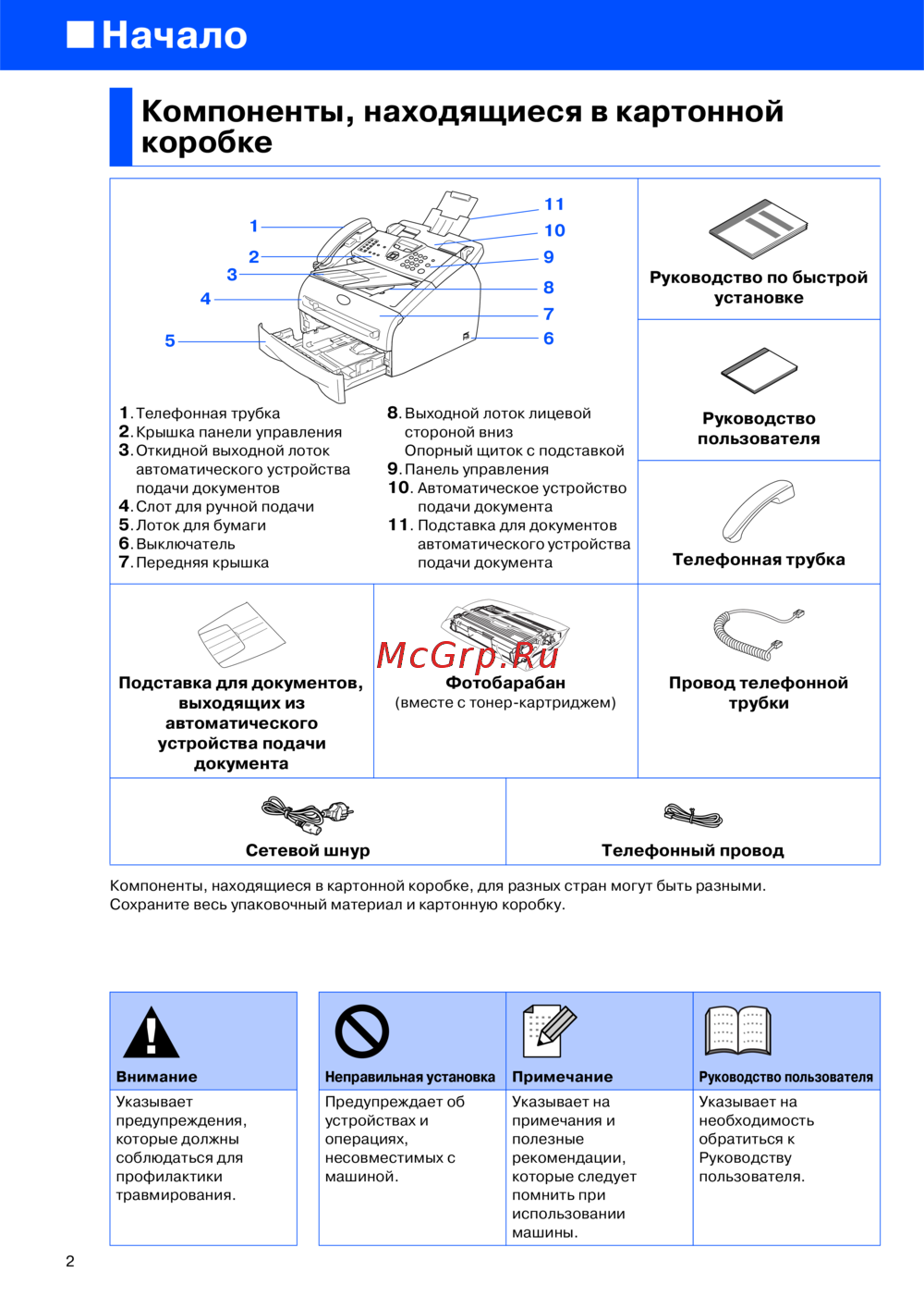 Brother Fax-2920R — компоненты и руководство по установке для принтера или МФФ [2/12]