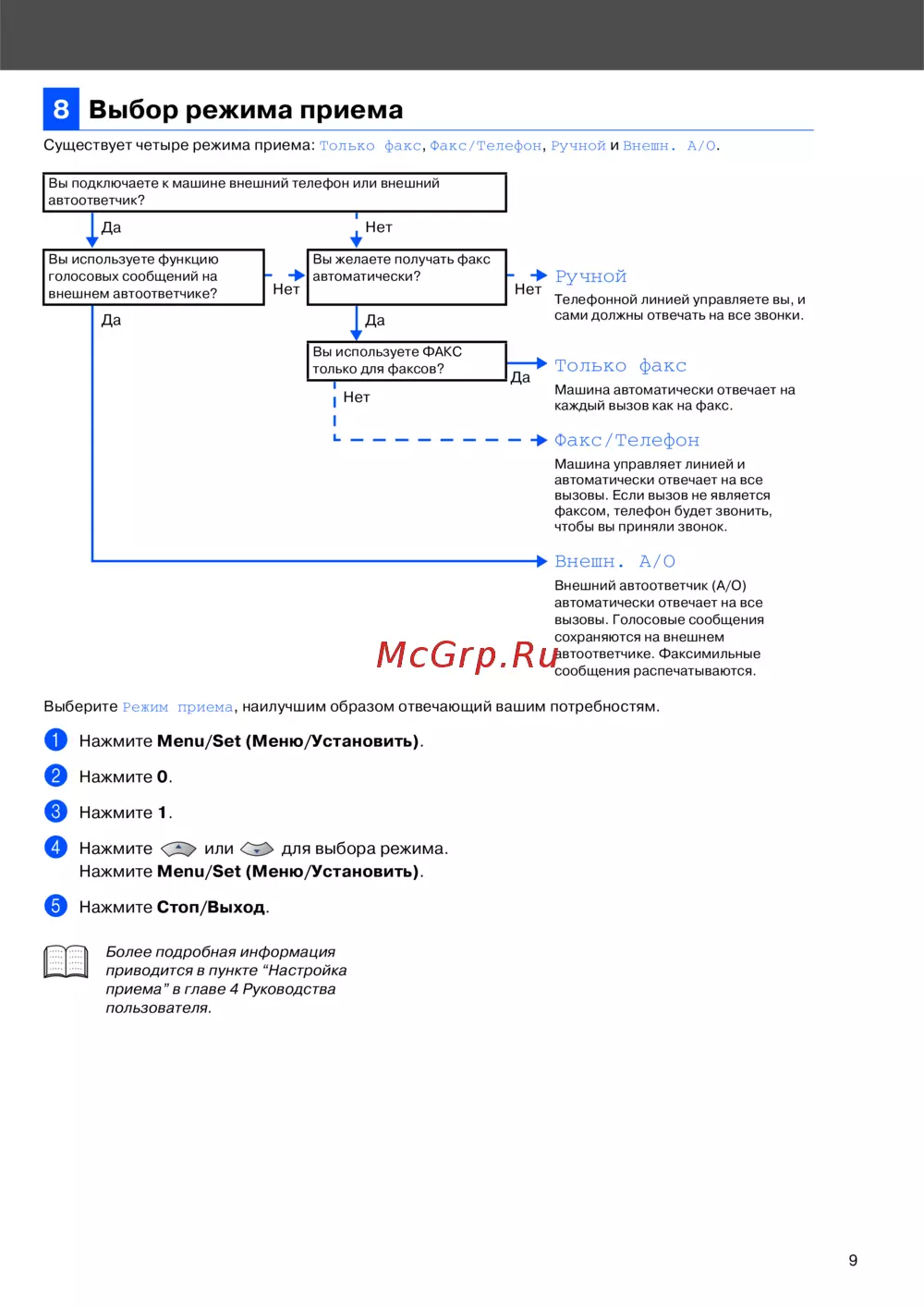 Brother Fax-2920R — выбор режима приема факсов и телефонных звонков [9/12]