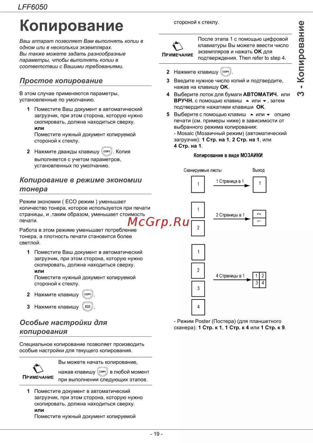 Philips LaserMFD 6050 — режимы копирования: стандартный, экономия тонера и особые настройки [24/92]