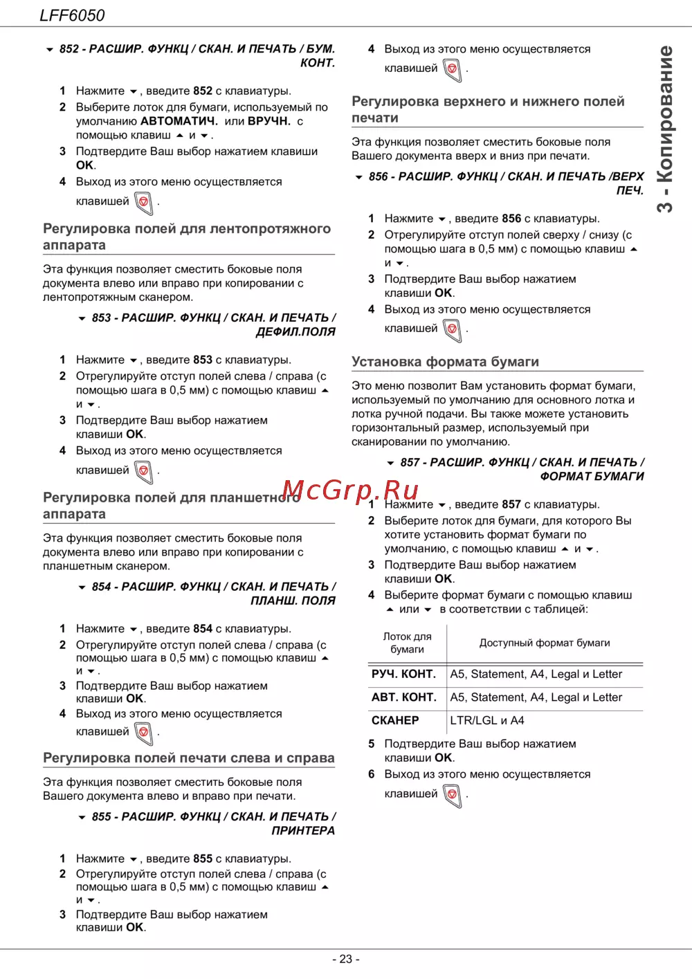 852 - РАСШИР. ФУНКЦ / СКАН. И ПЕЧАТЬ / БУМ.
