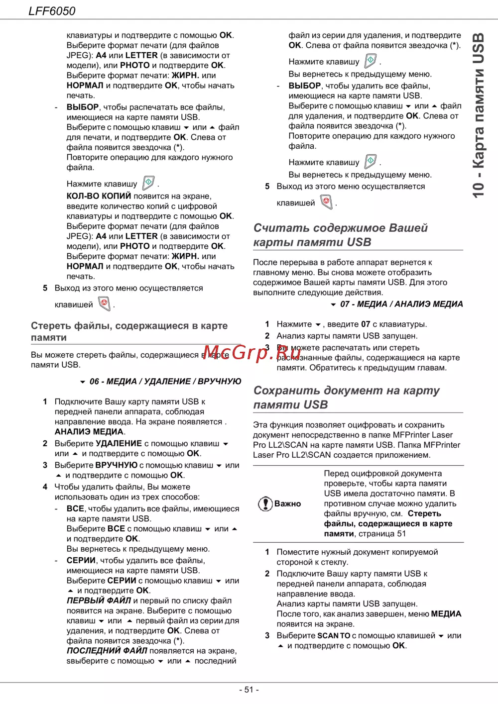 Pro LL2\SCAN на карте памяти USB. Папка MFPrinter