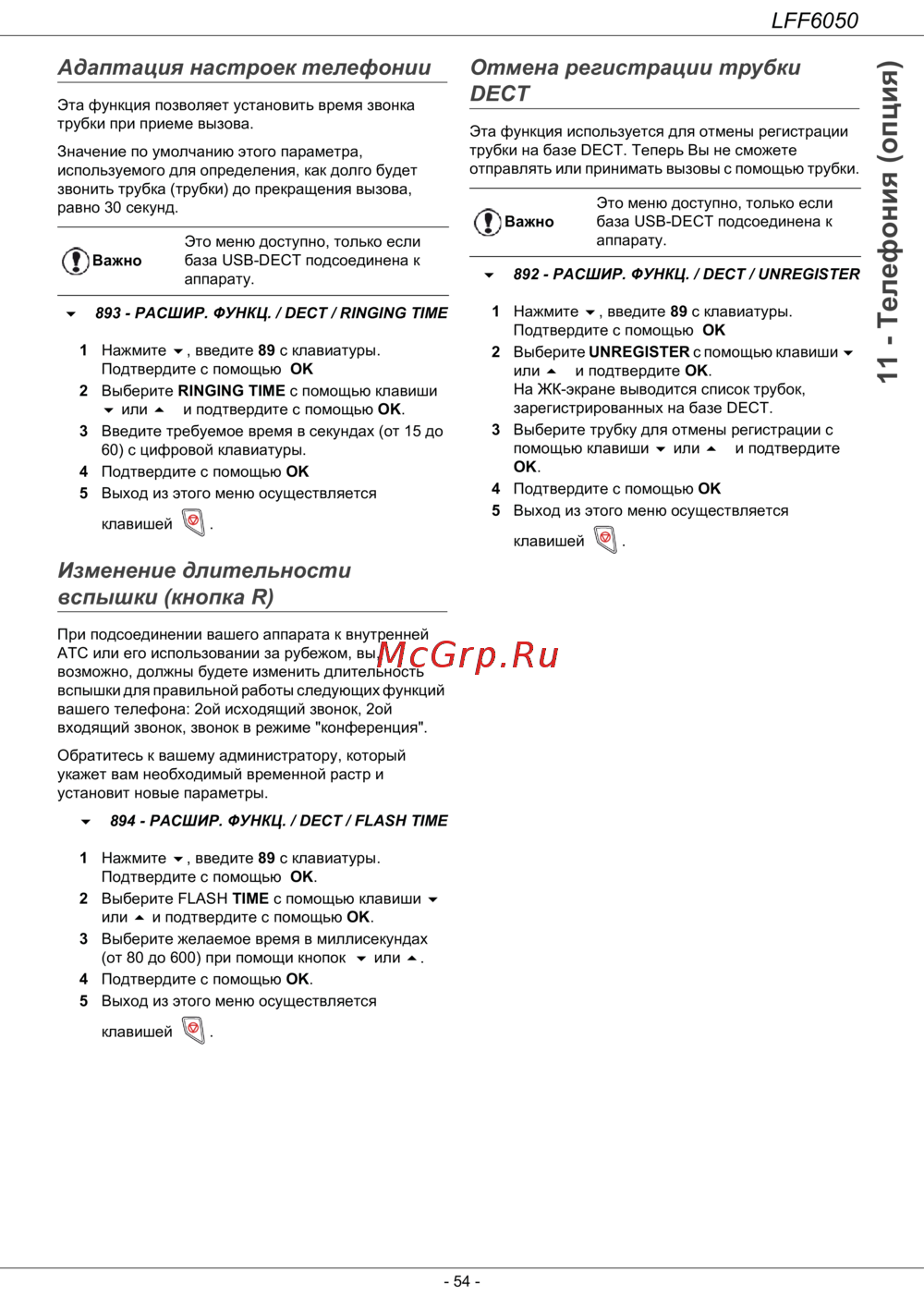 894 - РАСШИР. ФУНКЦ. / DECT / FLASH TIME