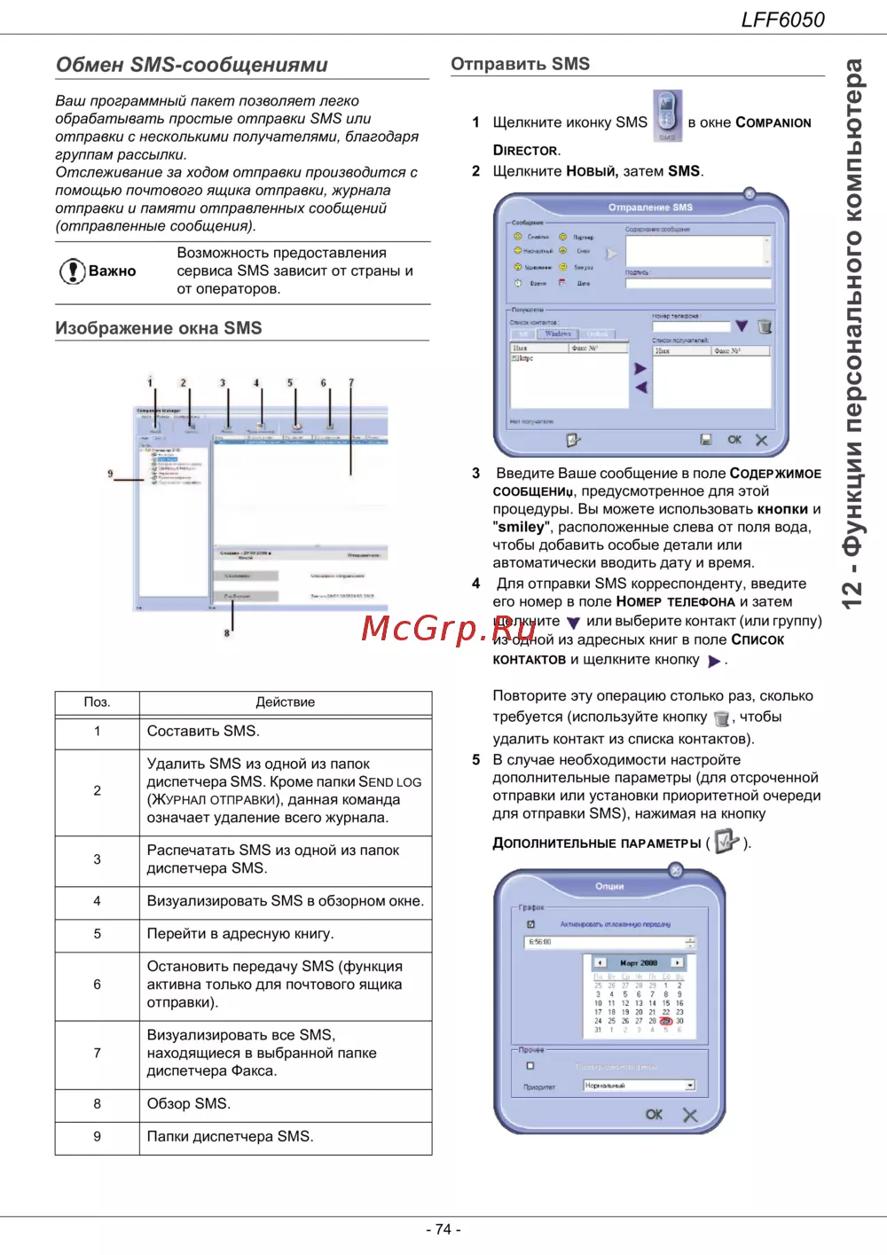 диспетчера SMS.