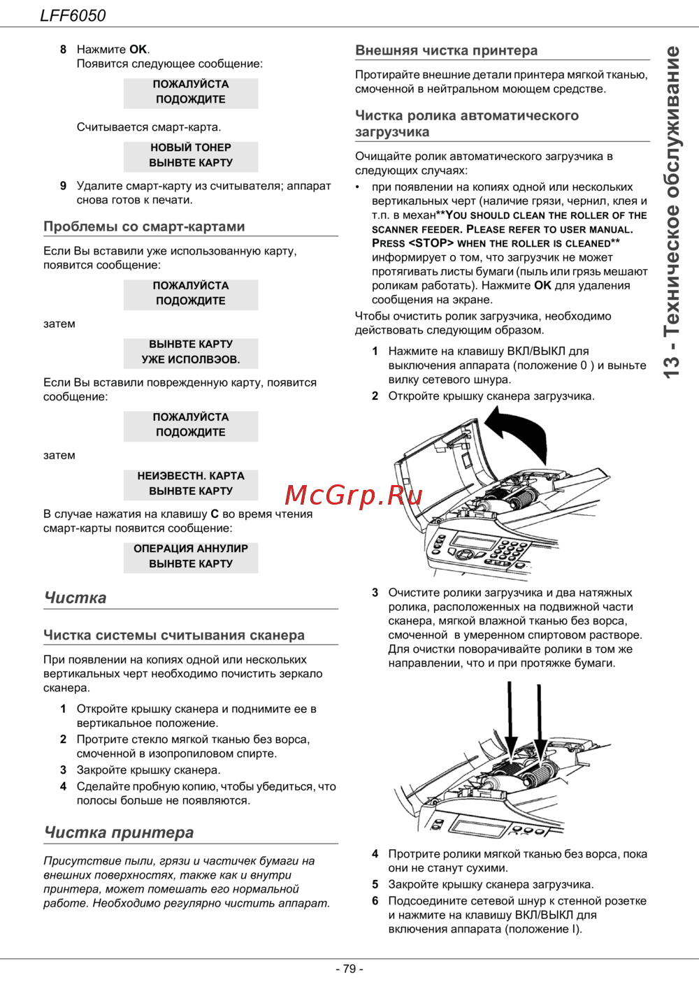 - Чистка системы считывания сканера p.84
