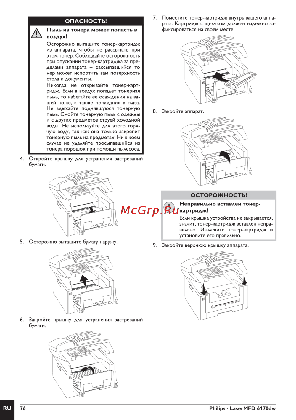 Philips LaserMFD 6170dw [76/96] Пыль из тонера может попасть в воздух
