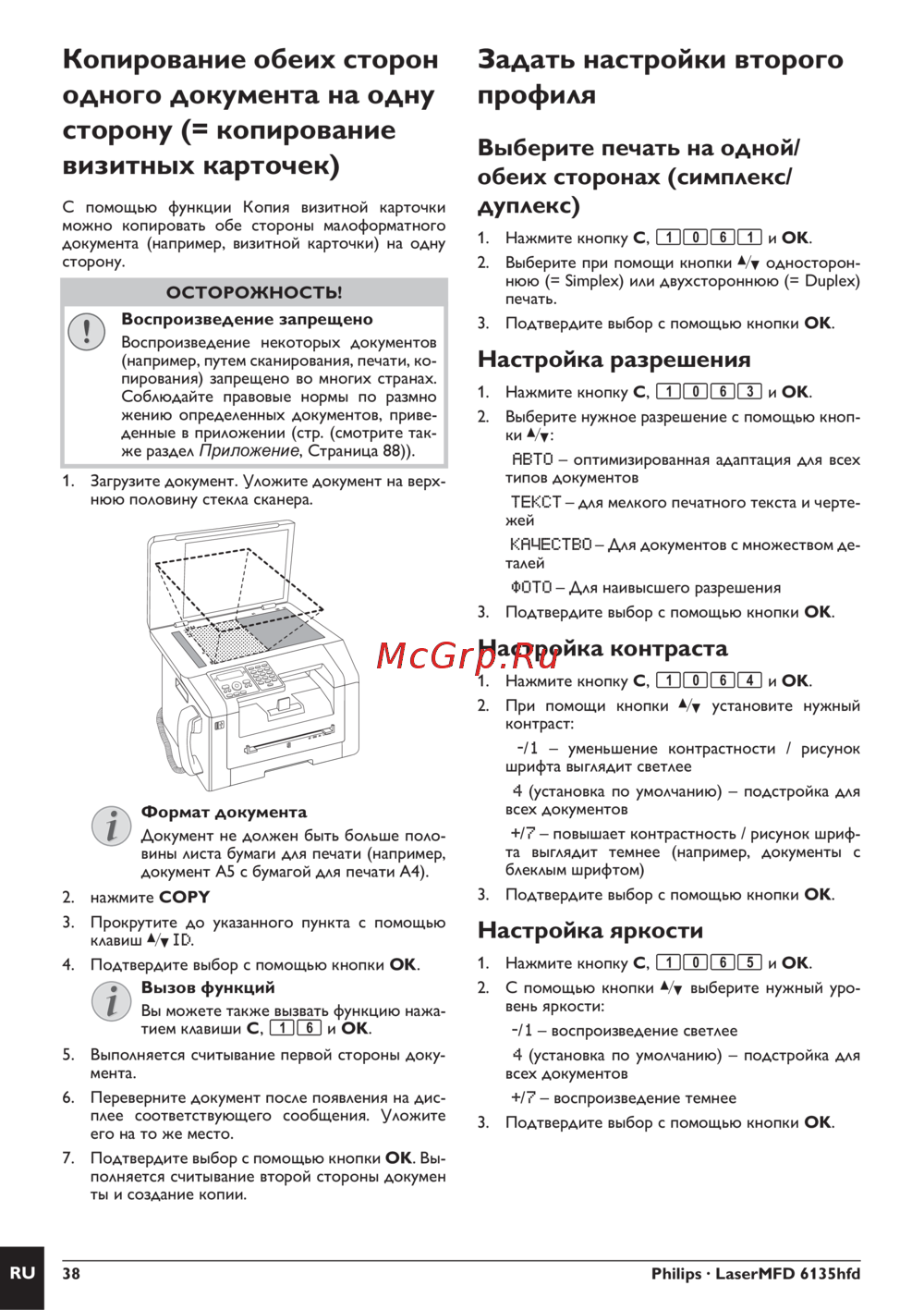 Philips LaserMFD 6135d — как копировать обе стороны документа на одну страницу [38/94]