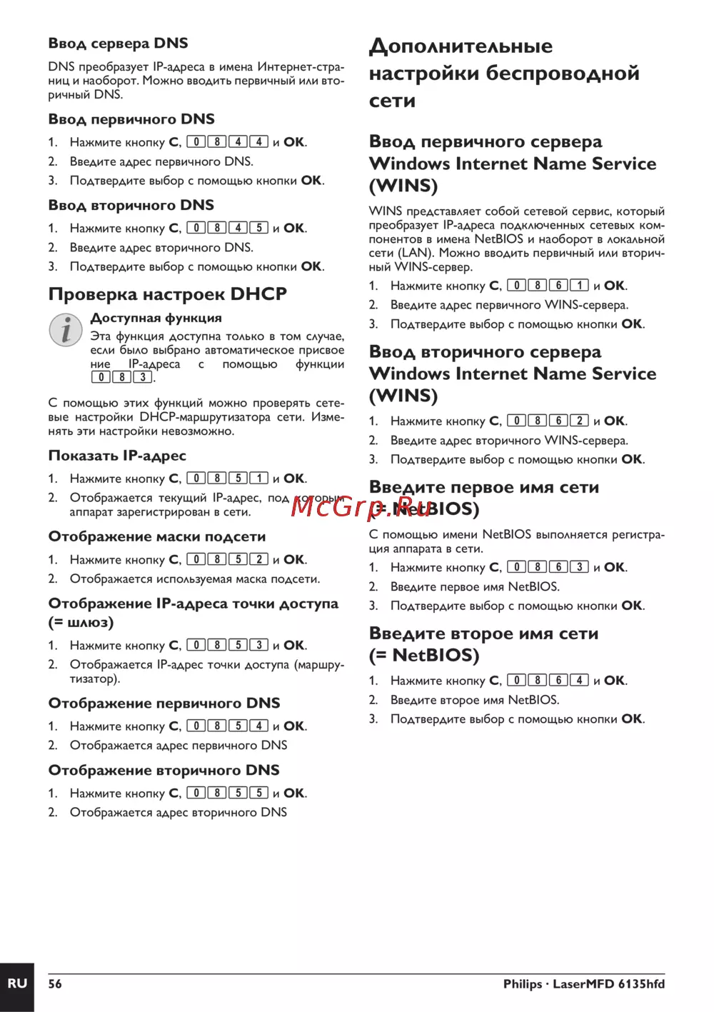 Philips LaserMFD 6135d [56/94] Дополнительные настройки беспроводной сети