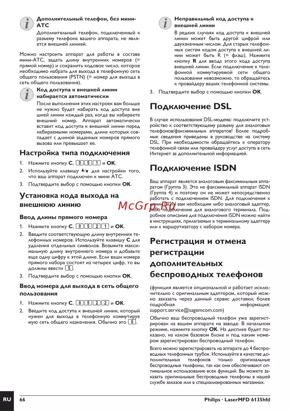Philips LaserMFD 6135d — настройка мини-АТС и подключение к телефонной сети [66/94]