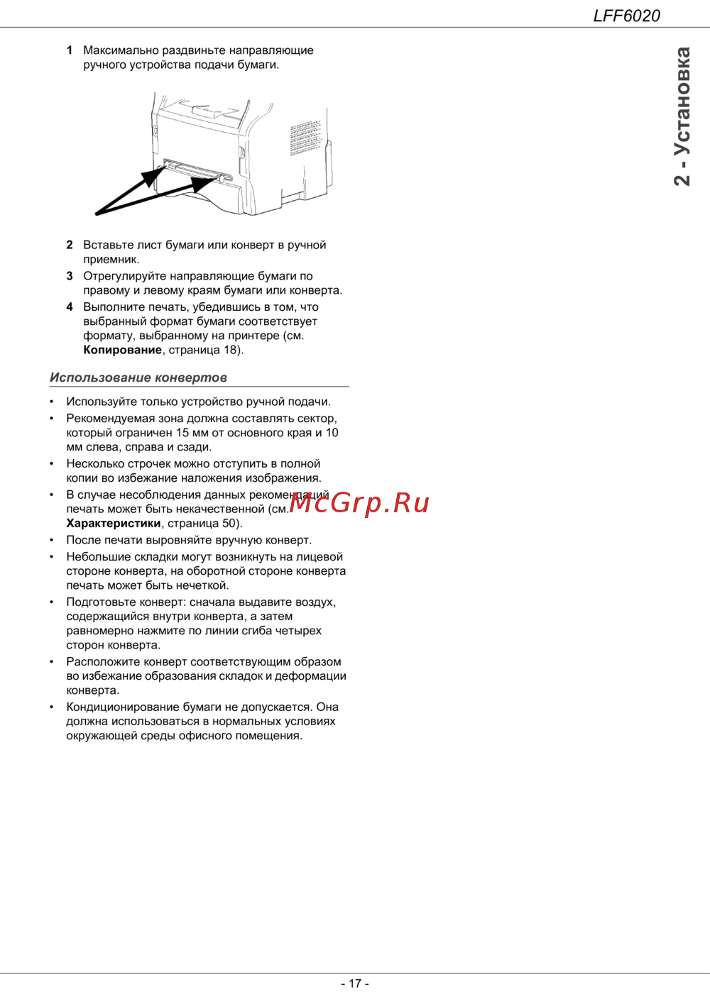 Philips LaserMFD 6020 — инструкция по установке и печати на ручном устройстве подачи бумаги [21/56]